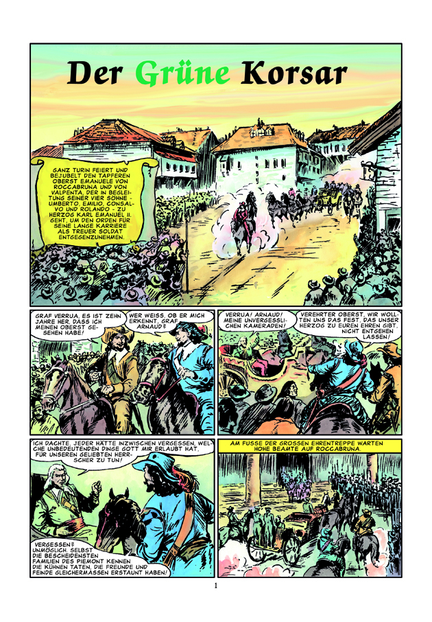 Von fast allen Romanen Salgaris gibt es in Italien Comicadaptionen. Auch „Il Corsaro Verde“ ist 1955 in Comicform veröffentlicht worden. Die italienische Fassung ist auf dem Sammlermarkt aber außerordentlich selten. Wir haben den Comic bearbeitet und neukoloriert und legen hiermit die deutsche Comicversion vor.