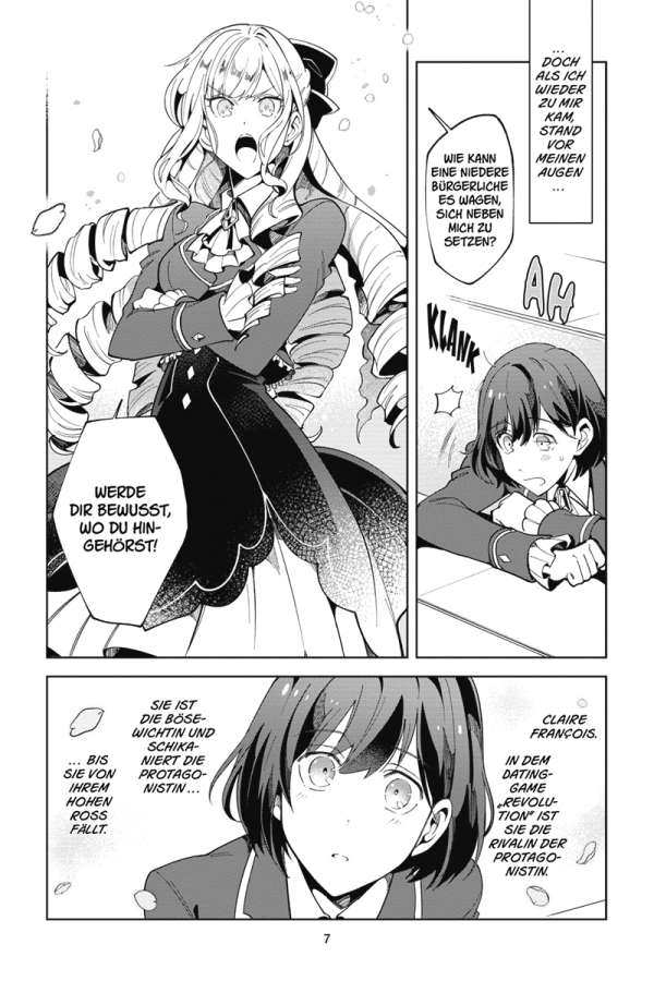 Als die junge Angestellte Rei Ohashi urplötzlich als Protagonistin in ihrem liebsten Dating-Game „Revolution“ wiedergeboren wird, ist das die perfekte Gelegenheit für sie, das zu tun, was sie schon immer tun wollte: Die Antagonistin verführen! Denn schon in ihrem vorherigen Leben haben die attraktiven Prinzen, die das Spiel zu bieten hat, keinerlei Interesse in Rei geweckt. Sie hatte stets nur Augen für die Rivalin Claire. Bewaffnet mit ihrem umfangreichen Wissen um das Spiel, gibt Rei nun alles, um das Herz der Frau ihrer Träume endlich zu erobern!