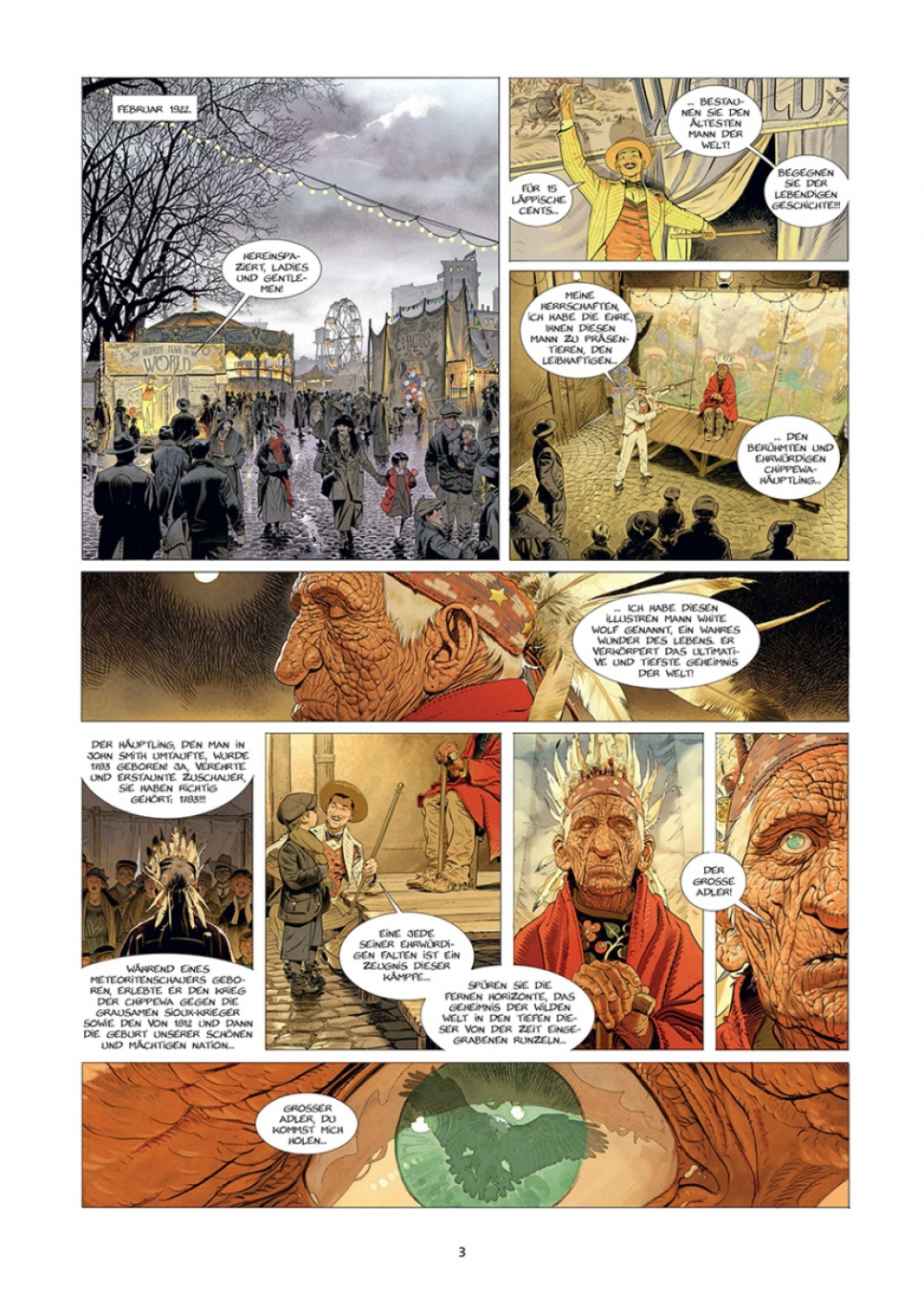1922, irgendwo in Amerika. White Wolf, ein ehemaliger Häuptling der Chippewa, sitzt als Zirkusattraktion vor Publikum und erzählt aus seinen Erinnerungen. Es sind Geschichten aus einem langen Leben, das bald sein Ende finden wird. Geschichten aus 400 Jahren Kolonialismus, von einseitigen Kriegen und zweischneidigen Verträgen, von Heldenmut und von Habgier. Geschichten vom wackeren Kampf der First Nations gegen den Mord an ihrem Volk und von ihrer scheinbar unausweichlichen Niederlage.
