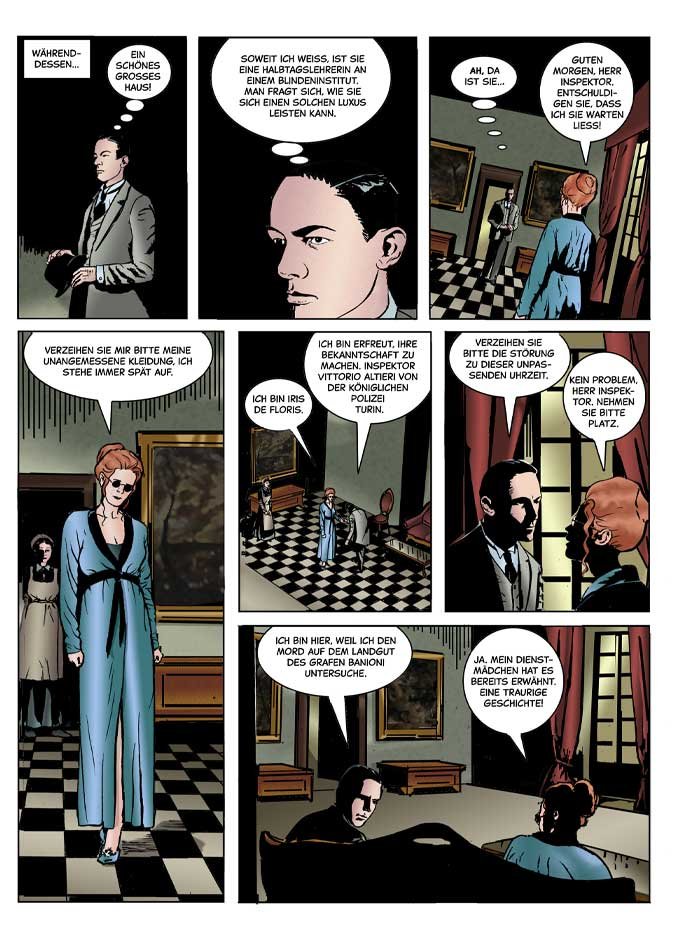 Unheimlich und zugleich fesselnd: Bei der Aufklärung von Kriminalfällen in seiner Stadt greift Inspektor Altieri auf die Gabe einer blinden Frau zurück. Dank ihrer übernatürlichen Kräfte, sich in Trance zu versetzen, erkennt sie die Täter und dringt in die tiefsten Geheimnisse der Menschen ein. Iris de Floris, die geheimnisvolle Hellseherin, die sich den gesellschaftlichen Zwängen ihrer Zeit entzieht, deckt die Verbrechen des 19. Jahrhunderts in Turin auf, wo die elitäre Gesellschaft hinter Ballmasken ihrem Drang nach Exzessen, Orgien und Prostitution freien Lauf lässt und selbst vor Mord nicht zurückschreckt.