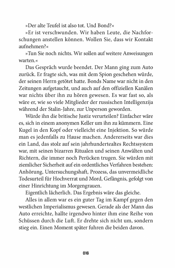 Hinter dem Eisernen Vorhang will eine Gruppe ehemaliger Smersh-Agenten den britischen Spion für eine Operation einsetzen, die das Gleichgewicht der Weltmacht verändern wird. Bond wird in die Höhle des Löwen geschmuggelt – aber wessen Befehle befolgt er und wird er ihnen gehorchen, wenn die Stunde der Wahrheit gekommen ist?