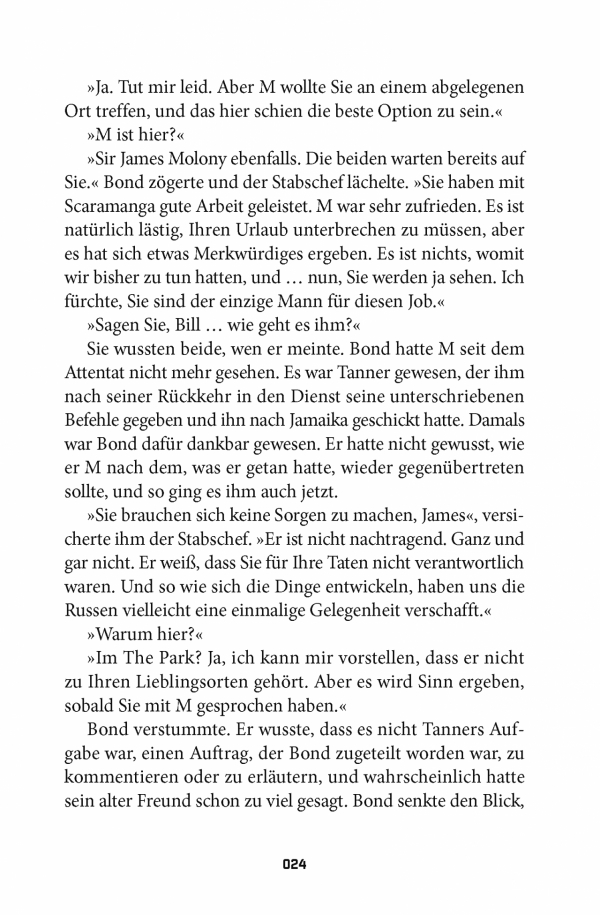 In einer Mission, in der Verrat allgegenwärtig ist und eine falsche Bewegung den Tod bedeutet, muss sich Bond mit den dunkelsten Fragen über sich selbst auseinandersetzen. Doch nicht einmal er selbst weiß, was aus dem Mann geworden ist, der er einmal war.