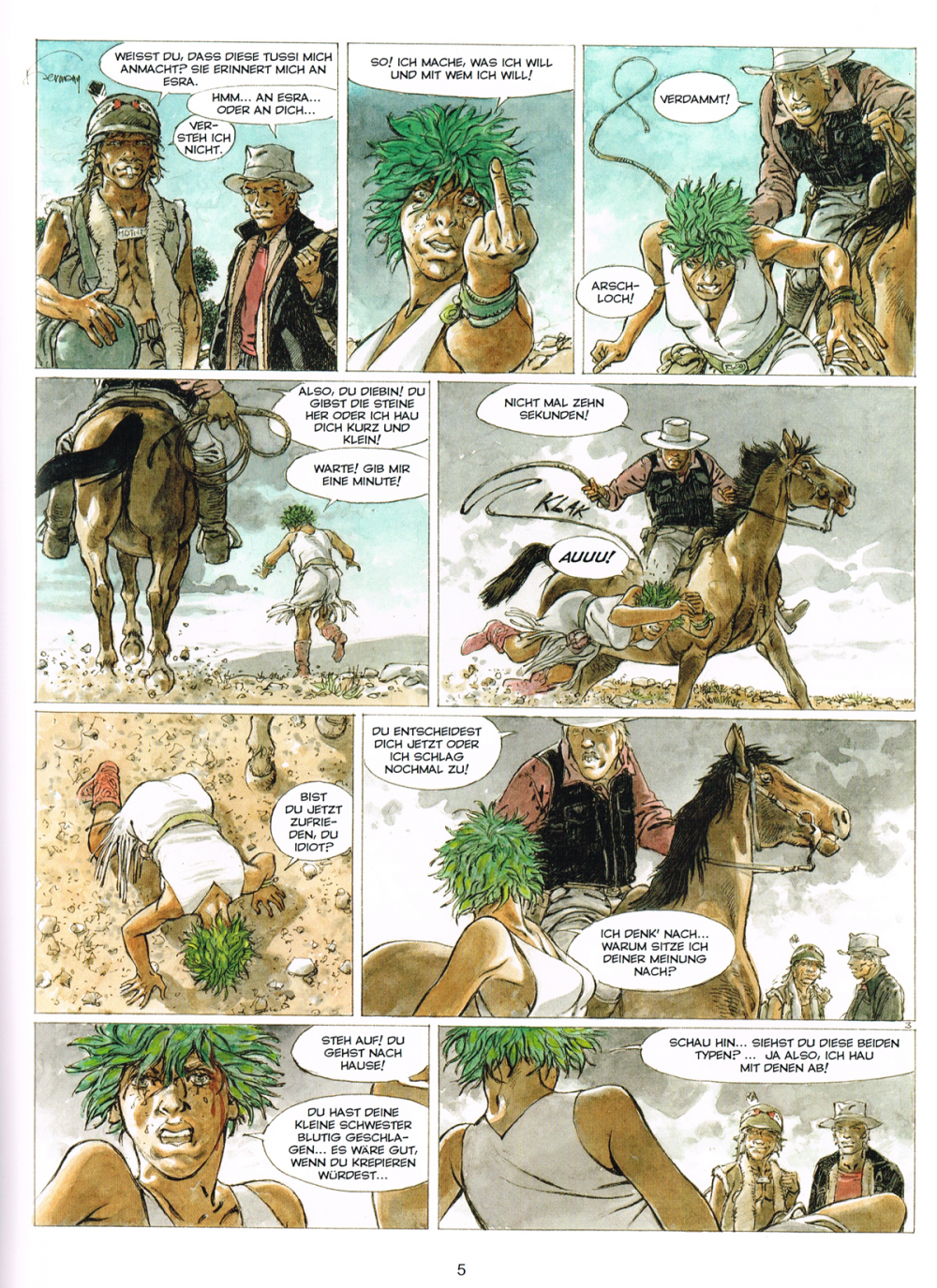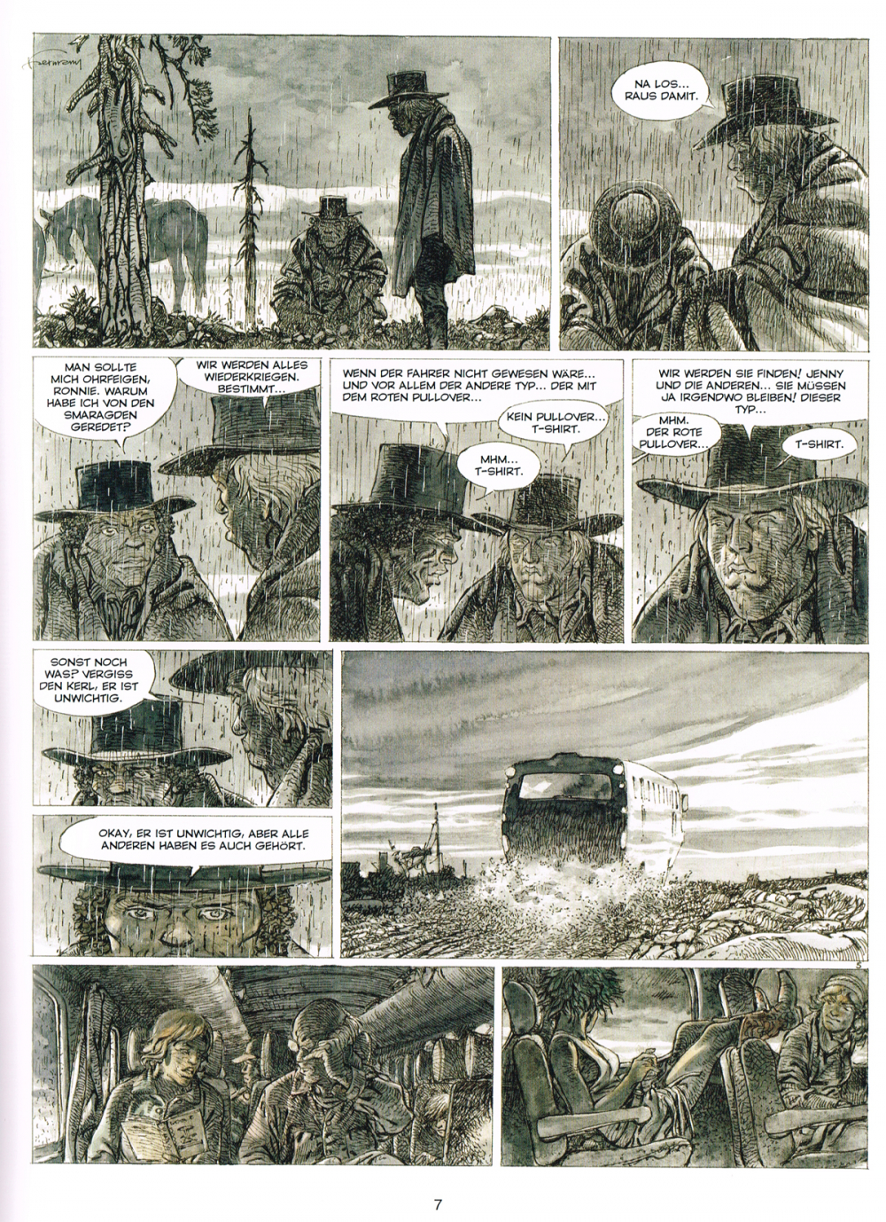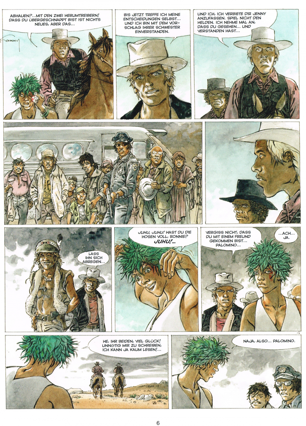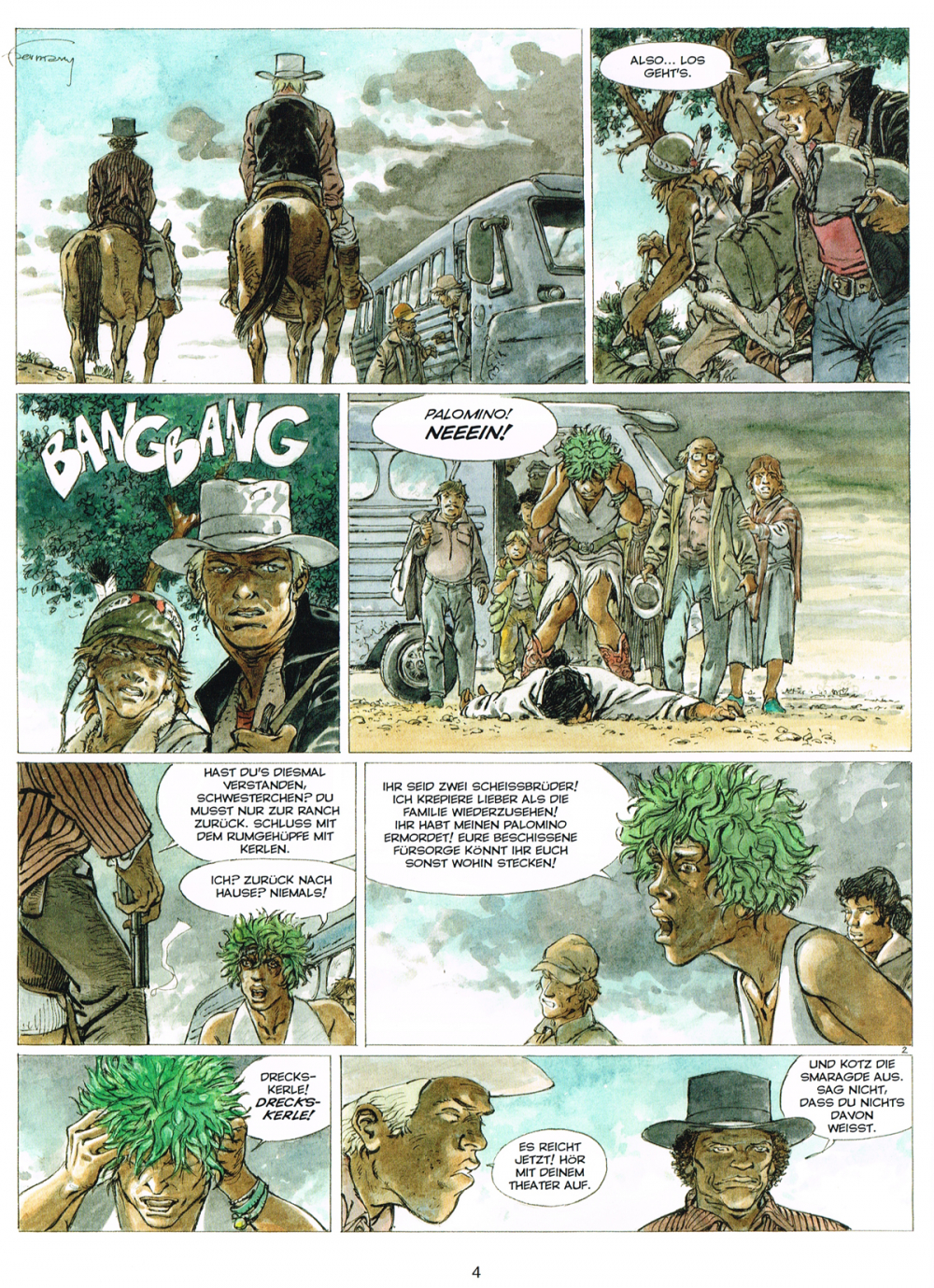 Mitten in der Wüste, in Bend Yellow, warten Jeremiah und Kurdy auf den Bus, um die Stadt zu erreichen. Aber wenn dieser kommt, sehen sie ein Familiendrama. Zwei Brüder zu Pferd kommen, um ihre Schwester Jenny zu holen, die mit ihrem Liebhaber Palomino geflohen ist, der sofort getötet wurde. In der Schlägerei haben sie jedoch eine mysteriöse Smaragdgeschichte erwähnt, und bald wissen alle Passagiere Bescheid. Immer bereit, einem Mädchen in Not zu helfen, spielen die beiden Helden den Beschützer bei Jenny, überschwänglich und freiwillig, der es weder an Sex-Appeal noch an Charakter unter ihrer grünen Perücke mangelt. Sie laufen zusammen weg und erfahren bald mehr darüber, wer hinter ihr her ist, und sie sind nicht nur ihre Brüder. Die sicherste Zuflucht ist immer noch die Hölle, diese Gegend, die alle Außenseiter und Gesetzlosen der Stadt vereint.