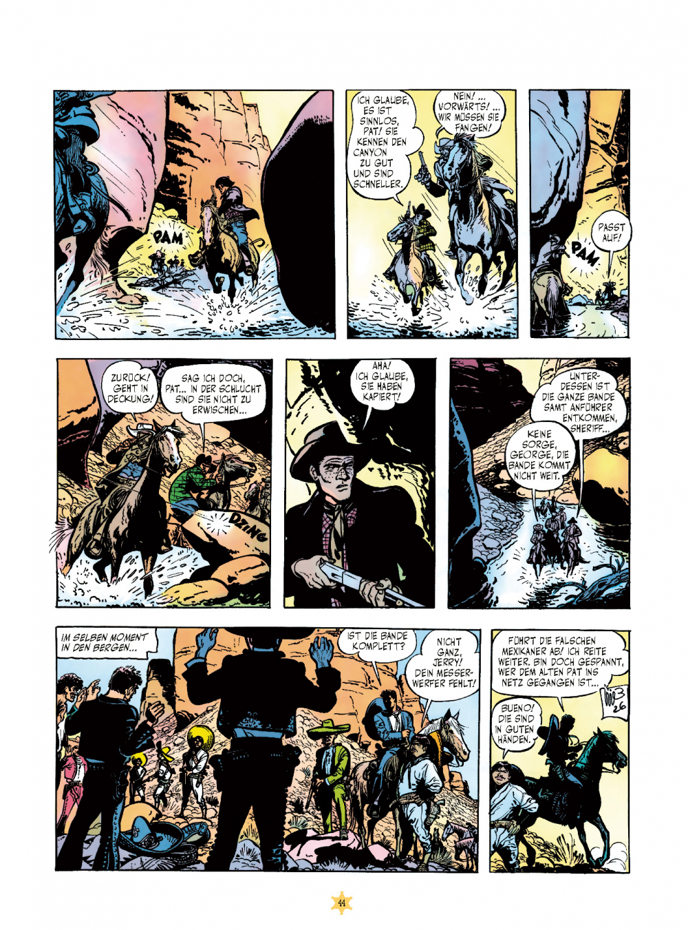 Im mexikanisch-amerikanischen Grenzgebiet macht Jerry Spring die Bekanntschaft des ehemaligen Vaquero »El Panchito«, der ihm von einer mysteriösen Räuberbande berichtet, die fast jede Nacht von Mexiko aus die Grenze überquert und Pferde und Rinder stiehlt. Gemeinsam mit dem Sheriff einer nahegelegenen Wüstenstadt will Jerry Spring der Verbrecherbande das Handwerk legen. Im Verlauf der lebensgefährlichen Jagd kreuzt der treffsichere Schütze den Weg des Mörders seines Vaters!