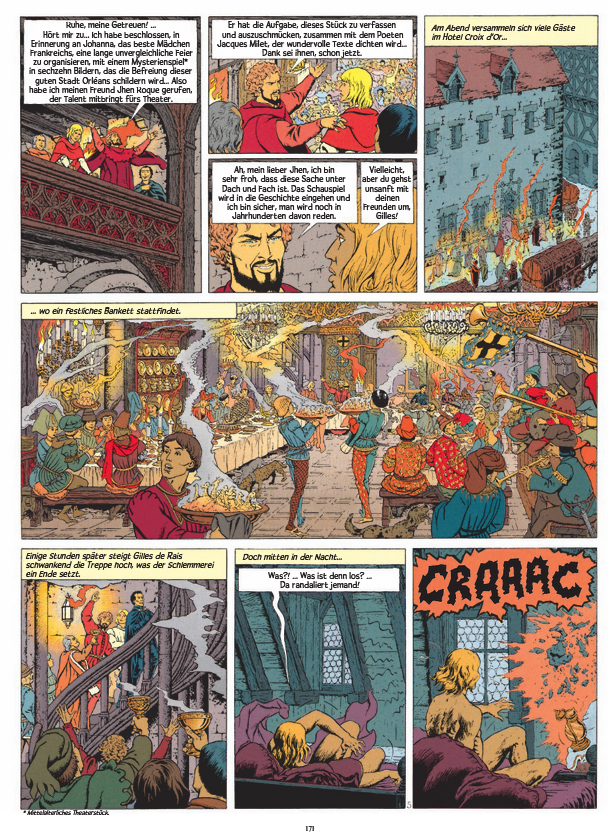 Jhen ist Gast von Gilles de Rais auf Schloss Tiffauges, um dessen Kapelle umzugestalten. Danach hilft er den Bauern eines Wehrhofes, deren Befestigungsanlage erneuert werden muss. Noch ahnt er nicht, dass er selbst dort nach einigen Abenteuern Zuflucht suchen wird, nachdem er Gilles dessen Lebenswandel vorgehalten hat und hinter sein schreckliches Geheimnis gekommen ist.