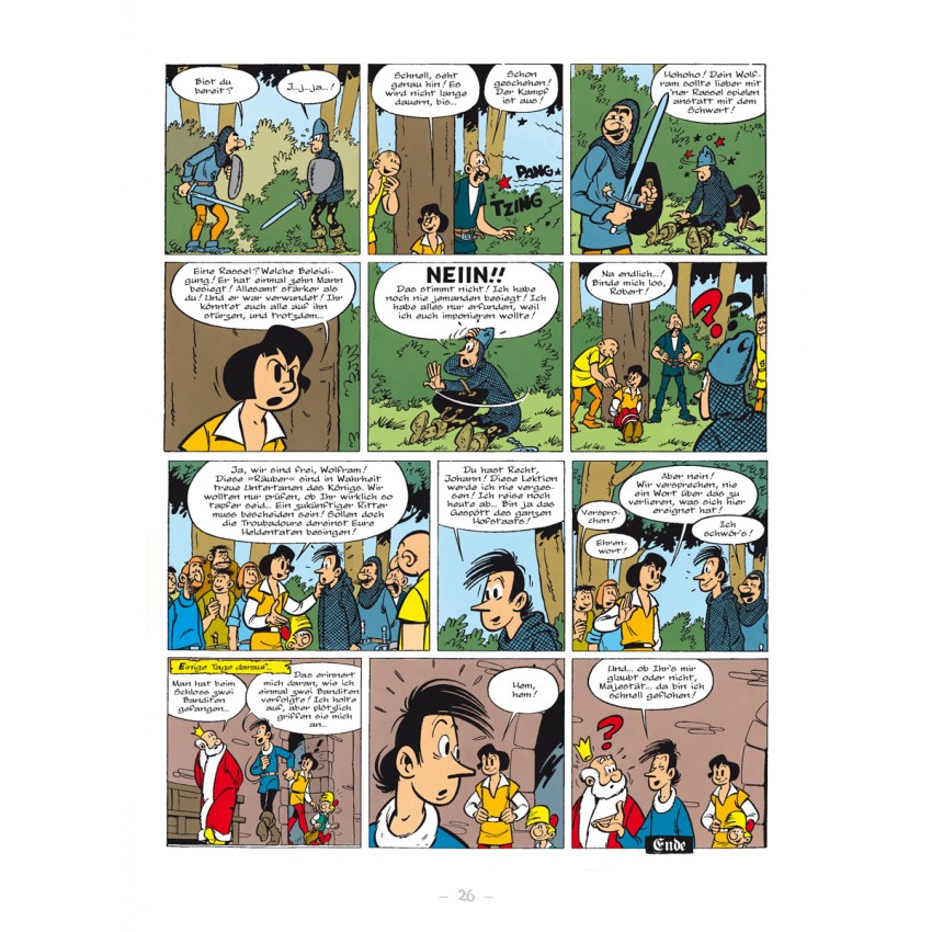 Am Anfang war Johann: ein Page mit dem Herz am rechten Fleck. Schon Ende der 1940er-Jahre unterhielten seine Abenteuer die Leser belgischer Tageszeitungen, ehe sie ab 1952 Woche für Woche das junge Publikum der Comic-Zeitschrift SPIROU begeisterten.