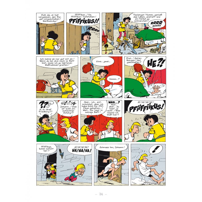 Die gesammelten Abenteuer von Johann, furchtloser Page und Schildknappe am Hof des Königs. Mit dabei sind schon im ersten Integral-Album sein blonder kleinwüchsiger Gefährte Pfiffikus und dessen charakterstarker schwarzer Ziegenbock Ricki. Dabei lernen sie viele interessante Charaktere kennen, wie zum Beispiel den Zauberer Homnibus und seinen Gehilfen Oliver … aber auch »im verwunschenen Land« die kleine blauen Wichte; die so schlumpfig aussehen, sich so schlumpfig bewegen und die in ihrer eigenen Schlumpfsprache sprechen. Johann, Pfiffikus und die Schlümpfe werden schnell Freunde und kämpfen von nun gemeinsam gegen das Böse…