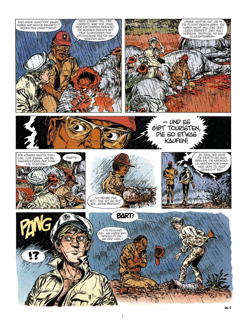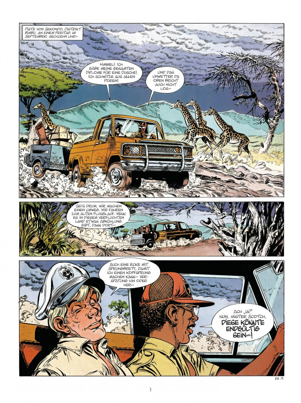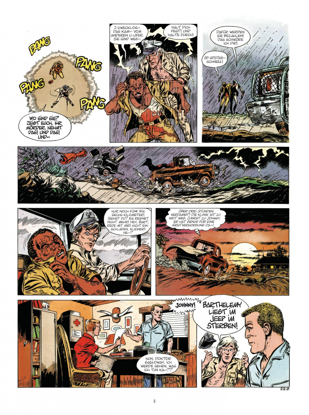 Wie auch Tiger Joe erlebt Johnny Congo seine bislang einzigen beiden albumlangen Abenteuer in Subsahara-Afrika. Gemeinsam mit seinem Freund Scotch muss sich Johnny Congo zunächst einem brisanten Fall widmen. Nachdem Wilderer eine Herde Elefanten, die an einer schrecklichen hochansteckenden Krankheit leiden, abgeschlachtet haben, beginnt ein gnadenloser Kampf gegen die Zeit, um den Ausbruch der Seuche zu verhindern. Danach sieht sich das Duo mit ebenso mysteriösen wie aggressiven Insekten konfrontiert, die alle Nahrungsvorräte vernichten.
