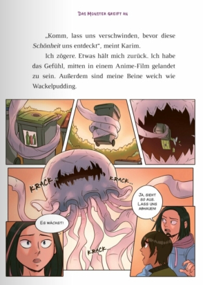 Die 14-jährige Yun würde am liebsten den ganzen Tag zeichnen. Sie ist weder sportlich noch abenteuerlustig. Nicht gerade die perfekte Heldin in einer Apokalypse! Aber während sie mit ihrem Klassenkameraden Karim ein Referat vorbereitet, stürzt eine riesige Kreatur auf ihr Hochhaus. Yun bleibt keine andere Wahl: Sie muss etwas tun, und zwar schnell! Aber wie bekämpft man ein riesiges Monster, das scheinbar aus einem Manga entflohen ist?