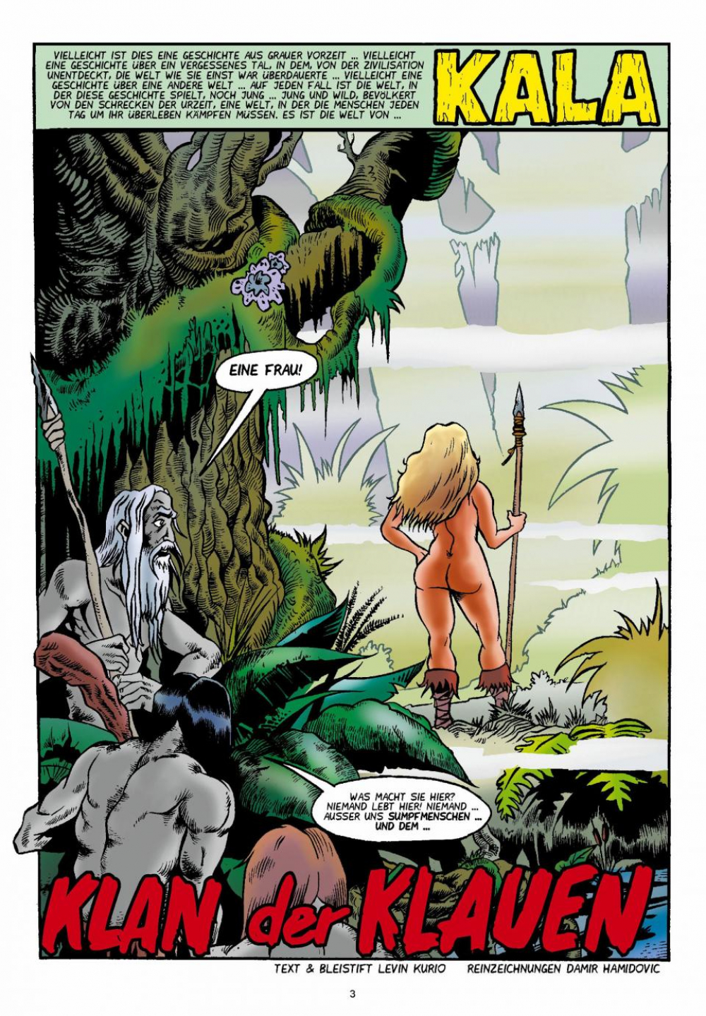 In diesem extradicken Heft wird nun das lange vergriffene erste albumlange (über 40 Seiten!) Abenteuer der Urweltamazone nachgedruckt: In Klan der Klauen verirren sich Kala und Tyr in den unwegsamen Sümpfen. Doch so dunstig und gefährlich dieses Terrain an sich schon ist, es treiben sich in dieser feuchten Gegend auch noch allerhand böswillige Bewohner herum.