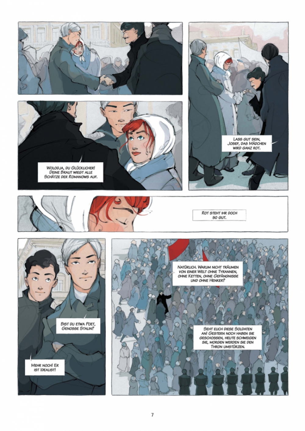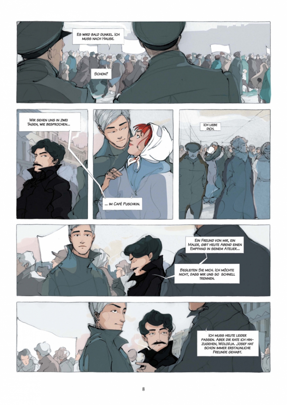 »Kameraden« ist zuallererst eine Romanze, wenn auch in harten Zeiten, und dem trägt nicht nur die grafische Umsetzung unbeirrt Rechnung, sondern auch die historischen Tatsachen haben sich dem letztlich unterzuordnen. So entsteht die mitreißende Erzählung von einer unmöglichen Liebe über alle Widerstände hinweg, wie sich das für eine große Romanze gehört – einen Hauch »Dr. Schiwago« inbegriffen.