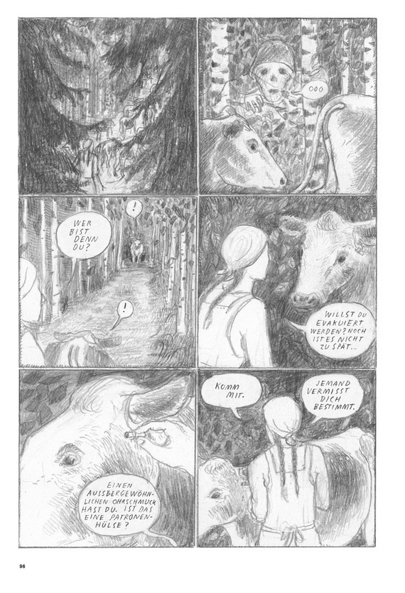 Die gezeichneten Seiten wechseln sich mit historischen Fotos ab, die Graphic Novel wird so zu einer visuell poetischen Auseinandersetzung mit der Geschichte.