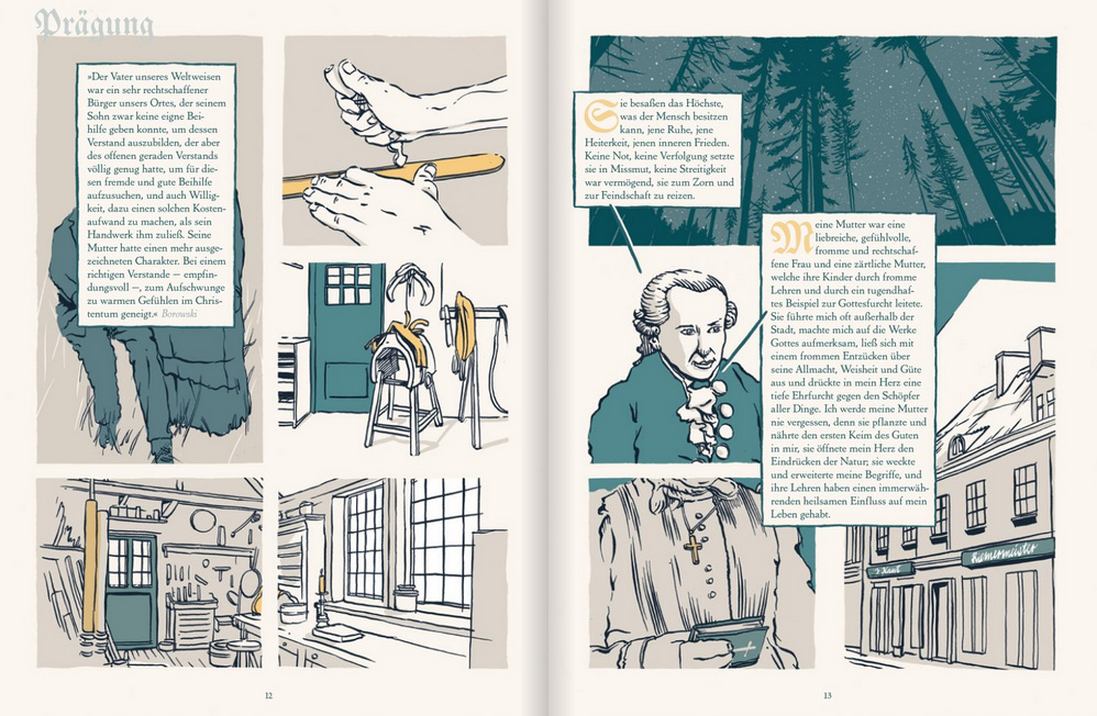 Was kann ich wissen? Was soll ich tun? Was darf ich hoffen? Was ist der Mensch? Diese vier Fragen prägten Kants Philosophie maßgeblich. Doch wer war der Vordenker der Aufklärung, dessen Überlegungen heute aktueller denn je sind? Anschaulich und leicht zugänglich zeichnet Jörg Hülsmann in dieser Comic-Biografie Kants spannenden Lebensweg nach, blickt auf seine Beziehungen zu Familie und Freunden sowie sein Netzwerk aus Förderern und Zeitgenossen. Auf verständliche Art und Weise werden seine zentralen philosophischen Ideen erläutert und seine wichtigsten Thesen erklärt. Auch Kants philosophisches Vermächtnis und die Relevanz seiner Ideen für ethische Diskussionen und ethisches Handeln heutzutage wird beleuchtet.