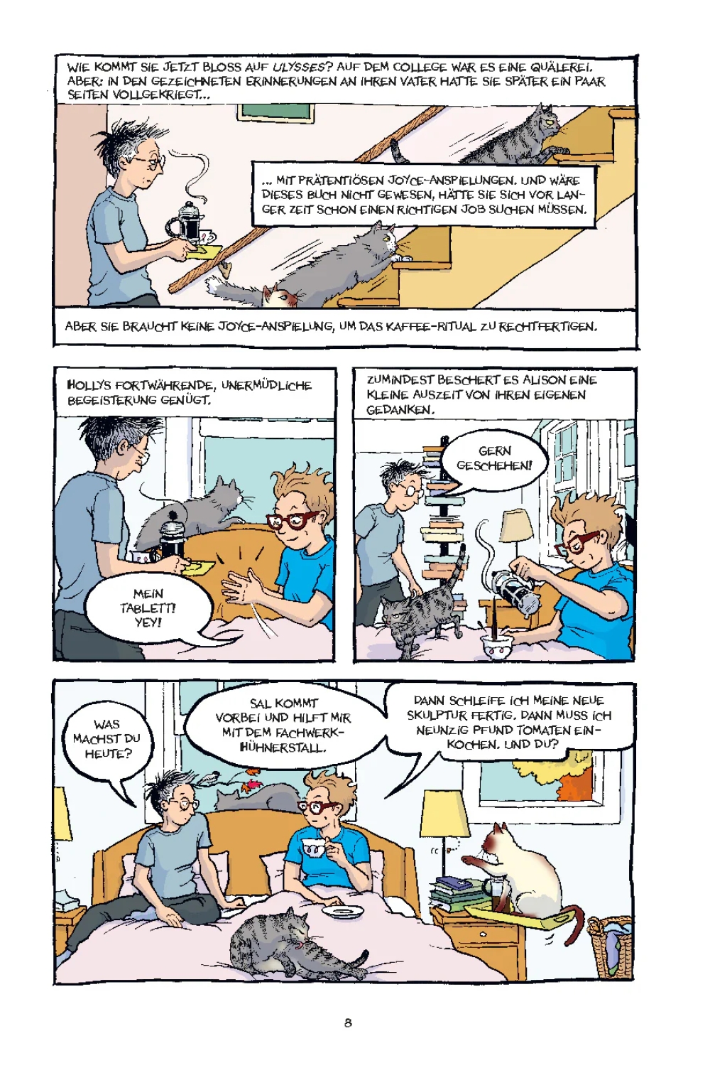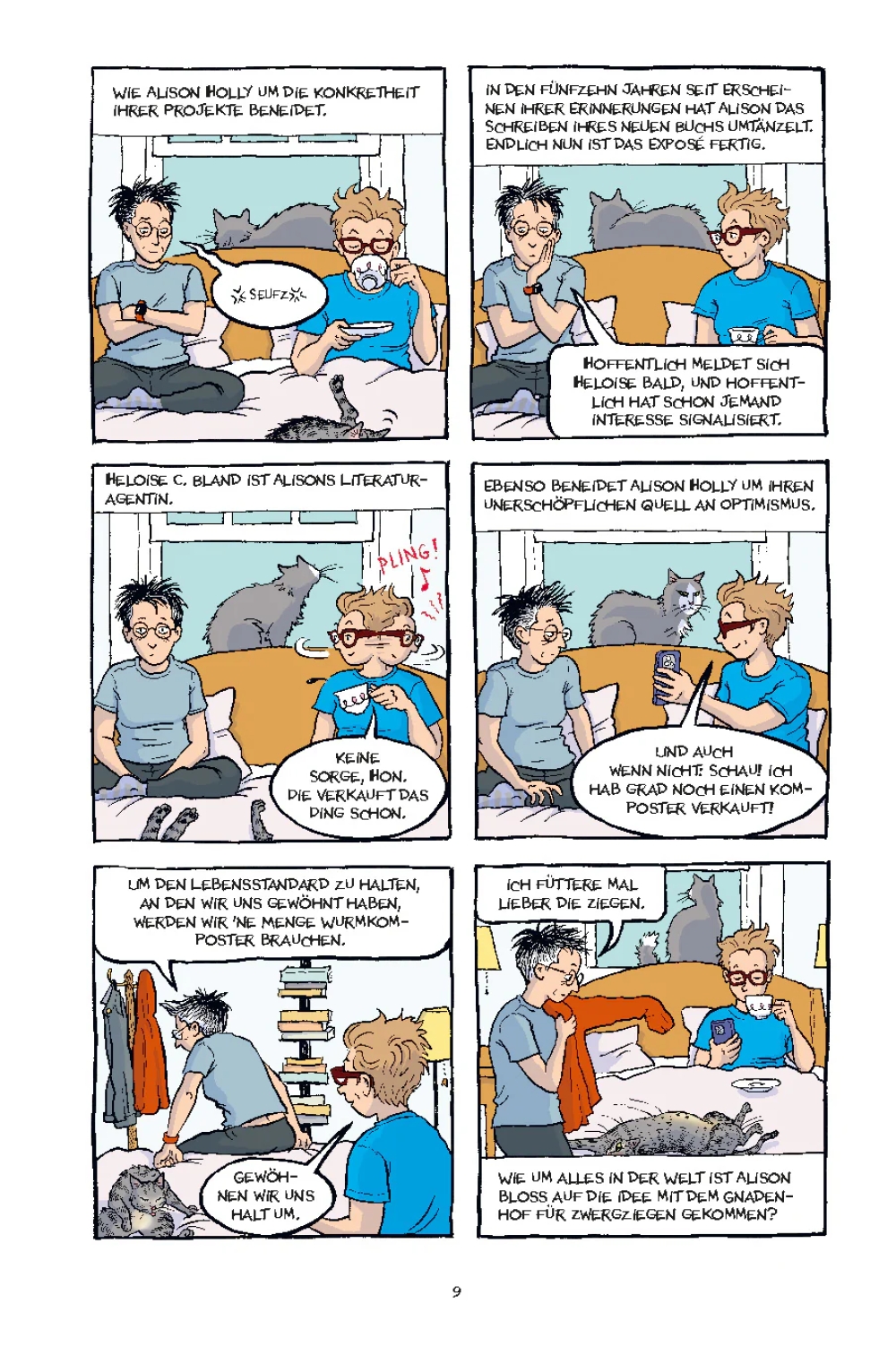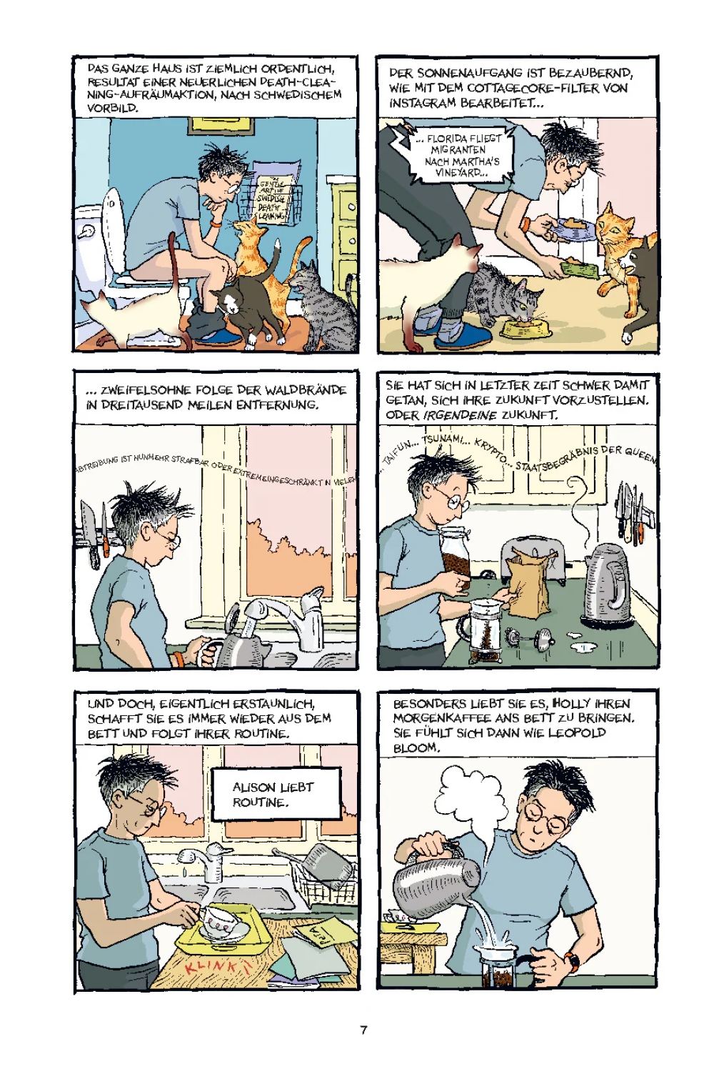 Alison Bechdel, Autorin der preisgekrönten autobiografischen Graphic Novel "Fun Home", hat mit "Kaputt" eine autofiktionale Satire geschaffen, in der eine Gruppe liberaler Babyboomer, darunter Alison und ihre Frau Holly, mit den Fallstricken des Kapitalismus konfrontiert wird. Die Clique erfüllt jedes Klischee, das die US-amerikanische Rechte abfällig als "Woke- Kultur" bezeichnet. Das Verblassen von Idealen im Laufe der Jahre und die Zugeständnisse, die man mit zunehmendem Alter macht, quälen die fiktive Alison ebenso wie das Gefühl, mit den TV-Rechten ihres Graphic-Novel-Bestsellers auch ihre künstlerische Unabhängigkeit verkauft zu haben.