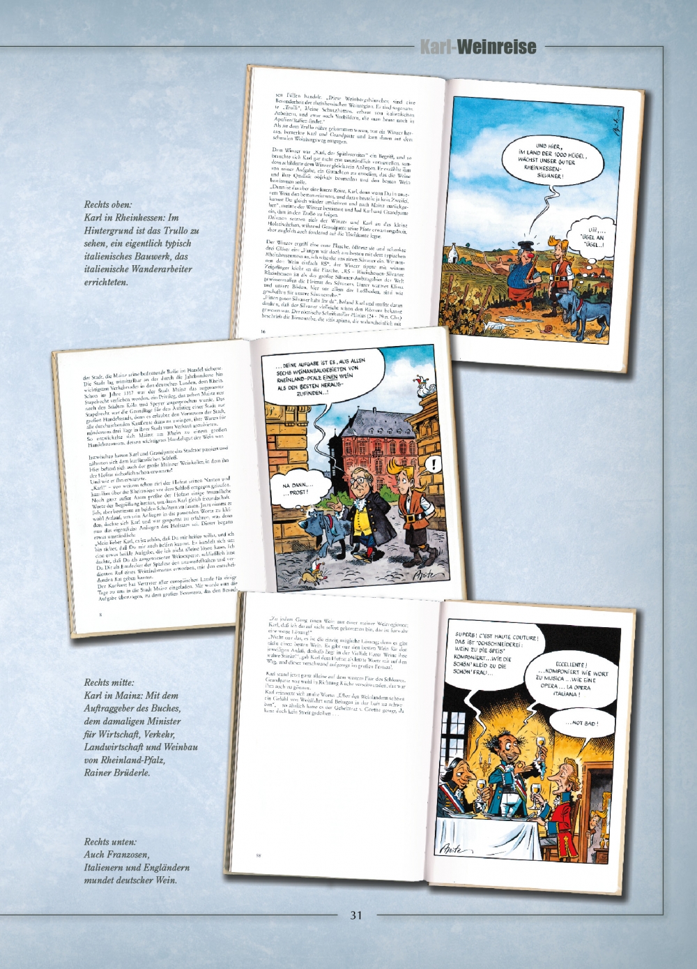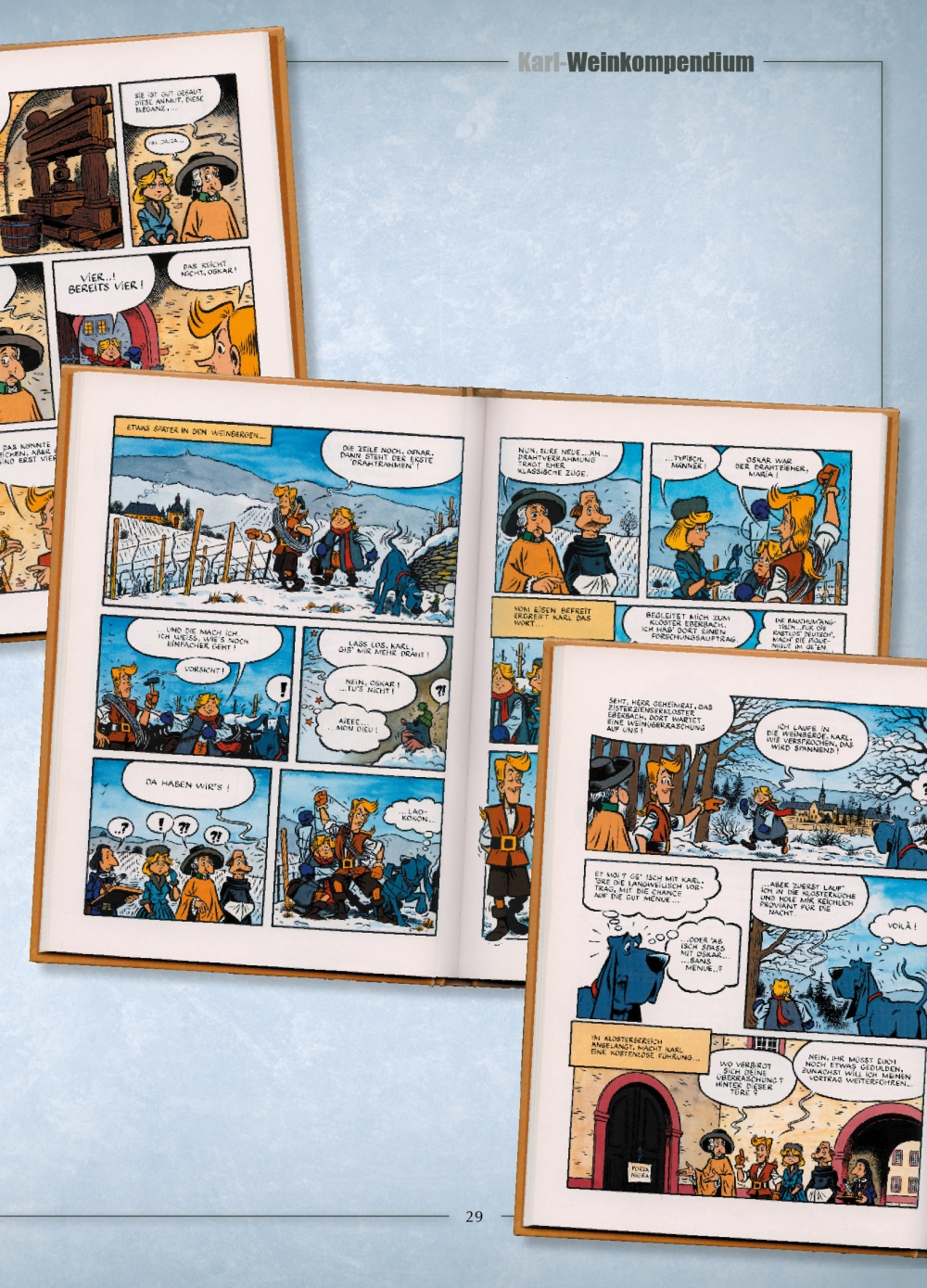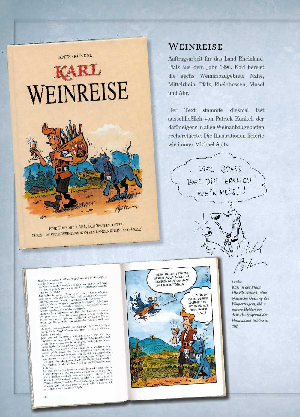 Die aus 12 Bänden bestehende Serie Karl von Patrick Kunkel & Michael Apitz wurde zwischen 1988 und 2004 in Softcoveralben veröffentlicht. Bei Finix wurde die Serie in einer optisch sehr schönen vierbändigen Hardcover-Gesamtausgabe neu herausgegeben.