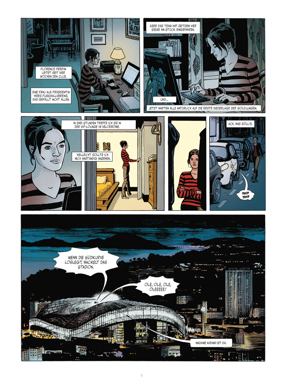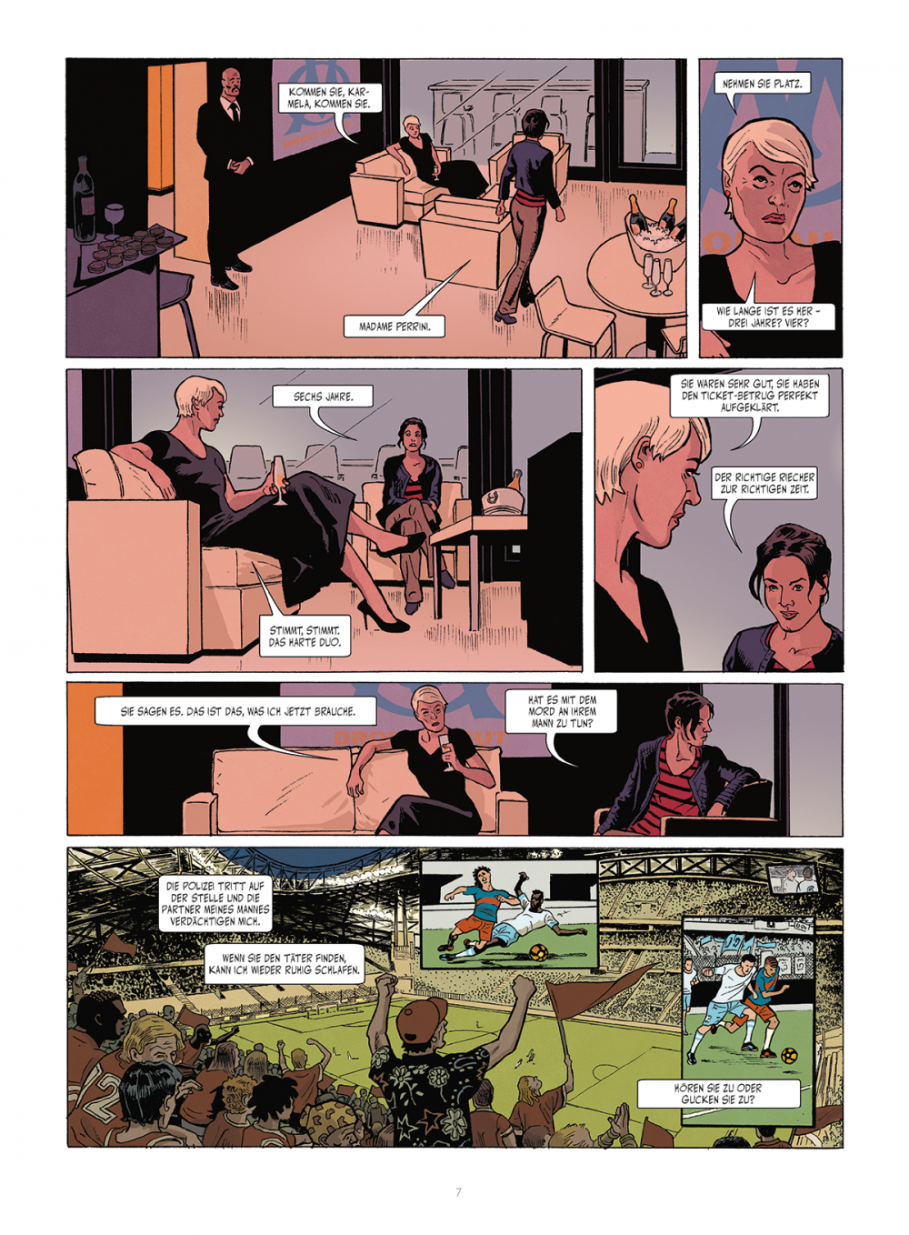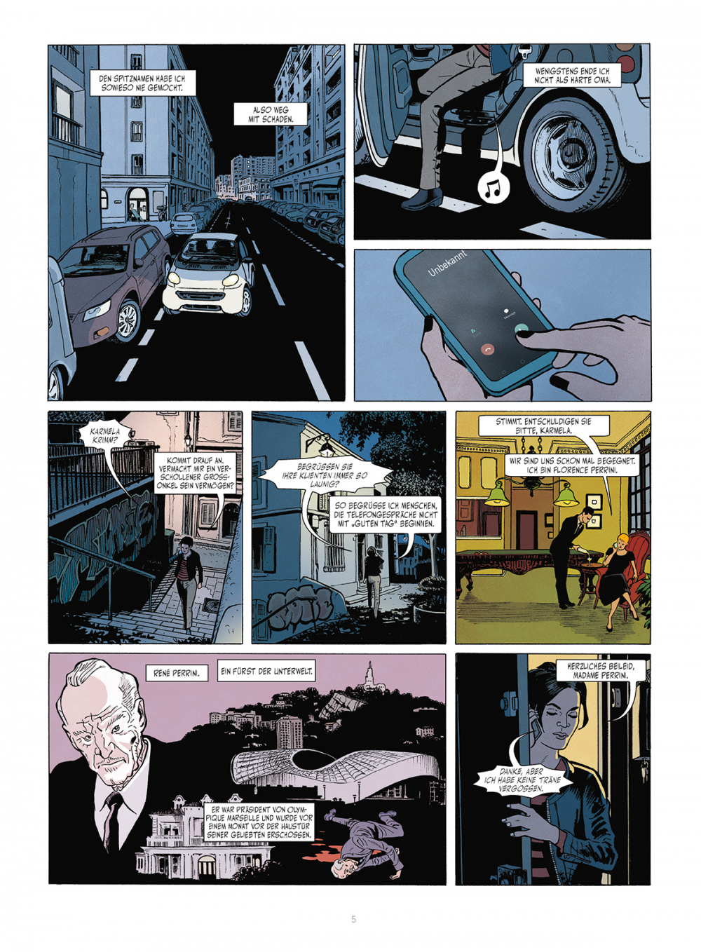 Der mächtige Präsident von Olympique Marseille, Perrini, wurde erschossen. Nun führt seine Witwe den Verein, doch sie wird des Gattenmordes verdächtigt. Karmela Krimm, Tadj und Manon ermitteln in der Unterwelt von Marseille. Karmela ist eine illusionslose Ex-Polizistin, Manon ein gewitztes Schulmädchen, Tadj ist Bodyguard und gläubiger Moslem. Und wir haben Ramadan.