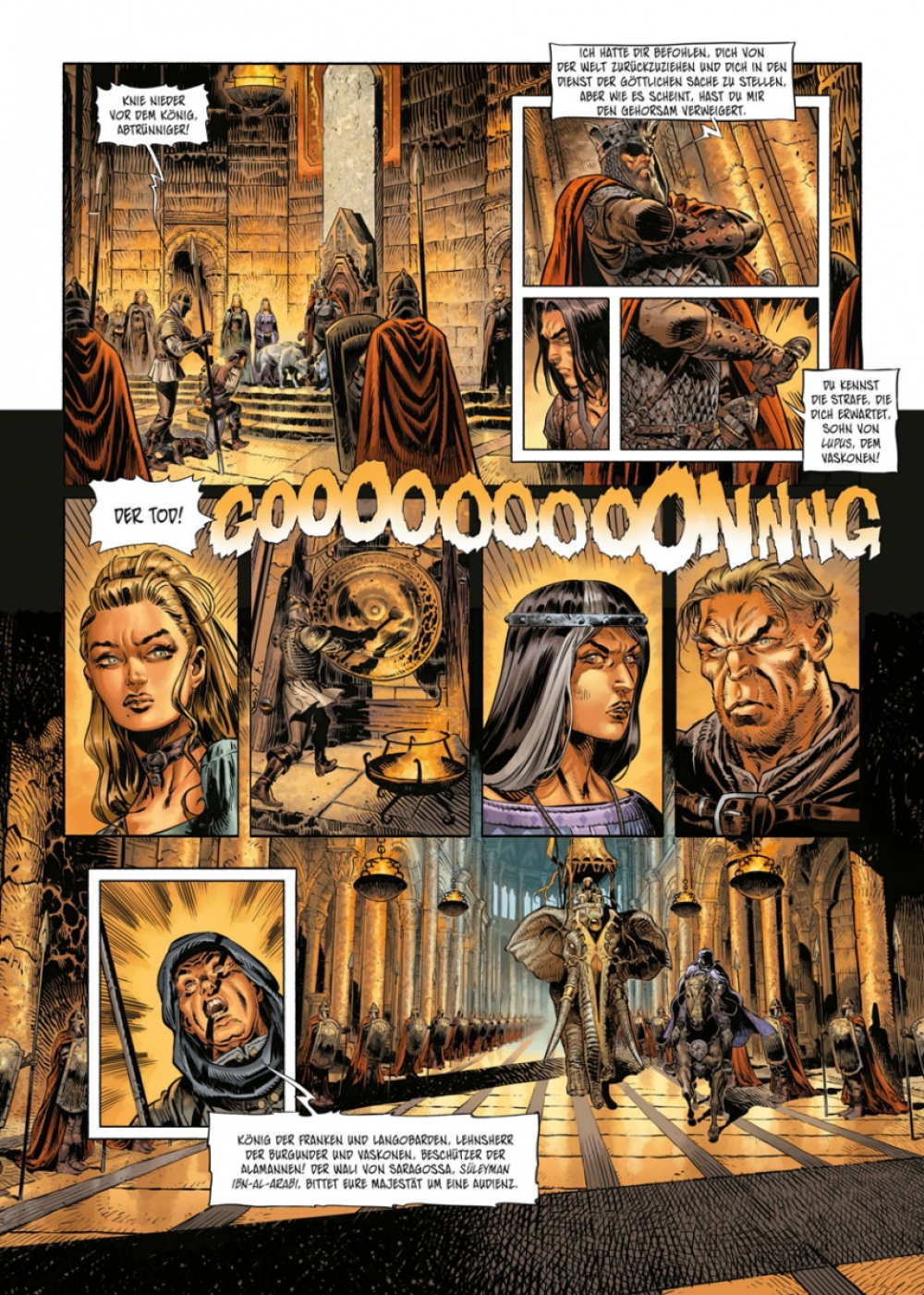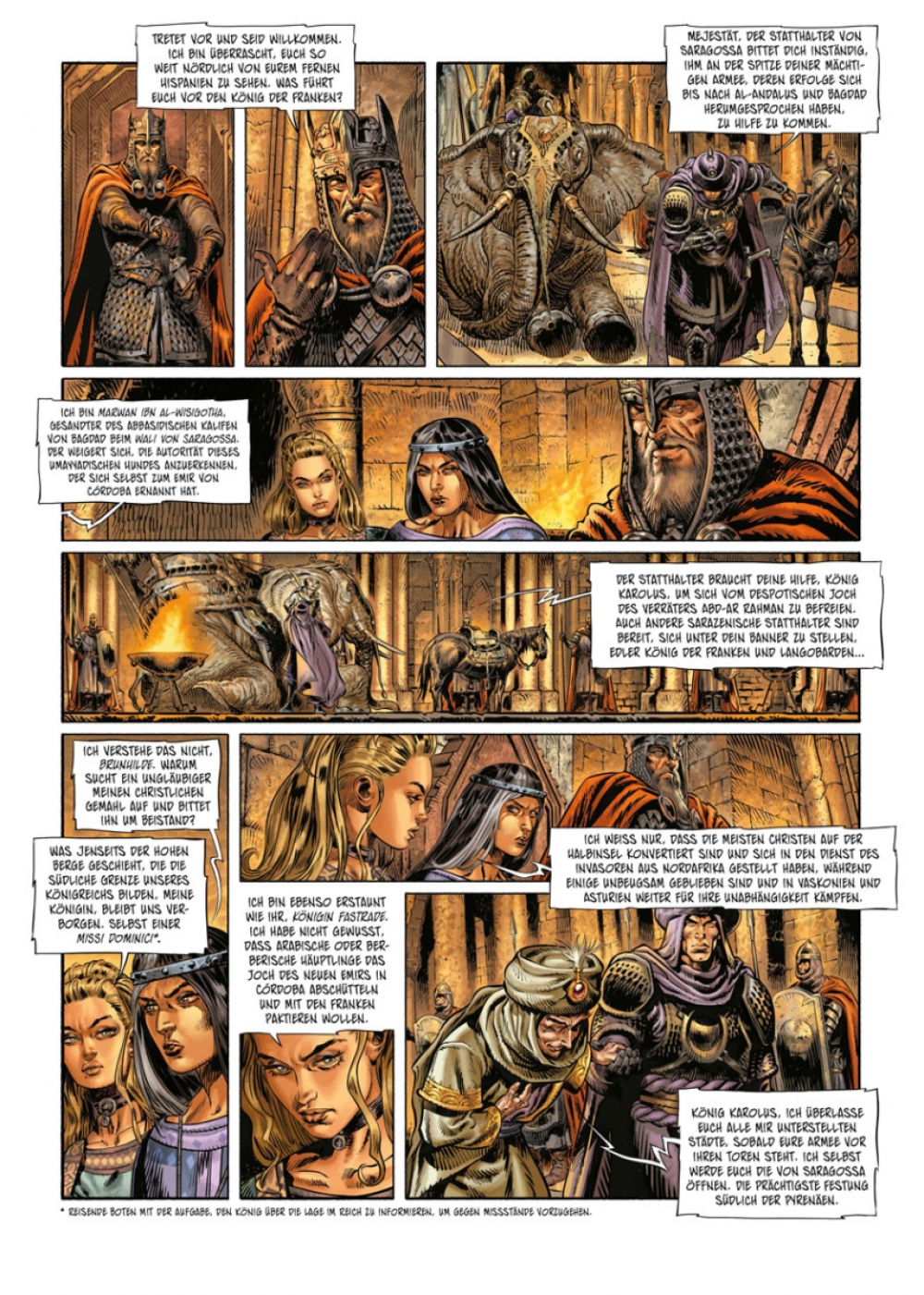 Das Fränkische Reich im Jahre des Herren 777. Karolus Magnus, König der Franken und der Langobarden und Erbe der Dynastie der Karolinger, ist gezwungen, sein Reich zu vergrößern, um seinen Anspruch auf den Thron zu legitimieren. Nach Vorbild des Augustus strebt er danach, zum Kaiser des Abendlands zu werden. Ein Bündnisangebot des Kalifen von Bagdad kommt ihm dabei sehr gelegen, denn nun steht der Eroberung des heidnischen Emirats von Córdoba im Süden Iberiens nichts mehr im Wege. Doch das kampfbereite Bergvolk der Vaskonier macht diesen Feldzug, den Karolus Magnus als Formalität betrachtet hatte, zu einem verlustreichen Krieg, bei dem der Frankenkönig nicht nur zahllose Männer, sondern auch sein Gesicht verlieren könnte.