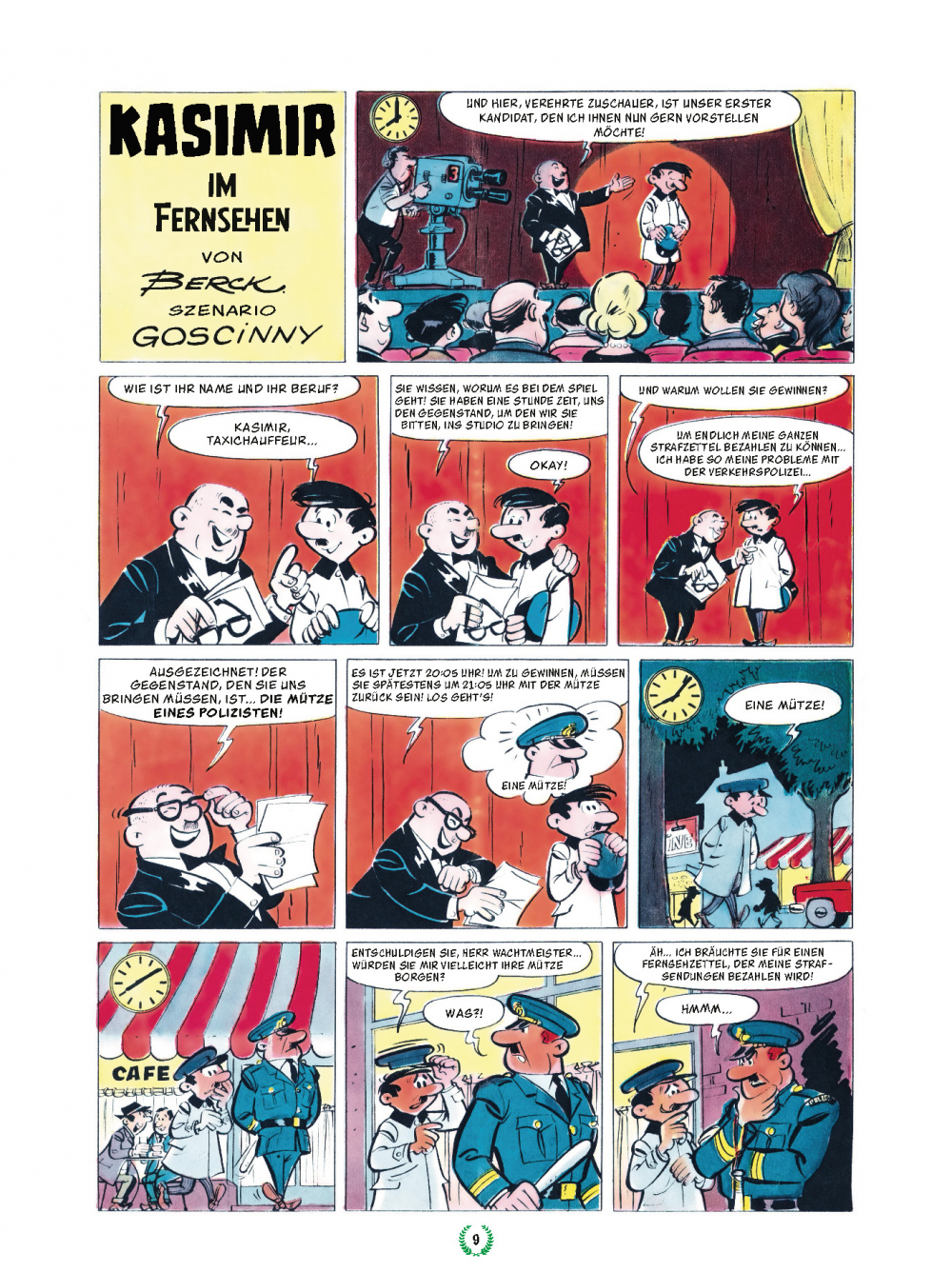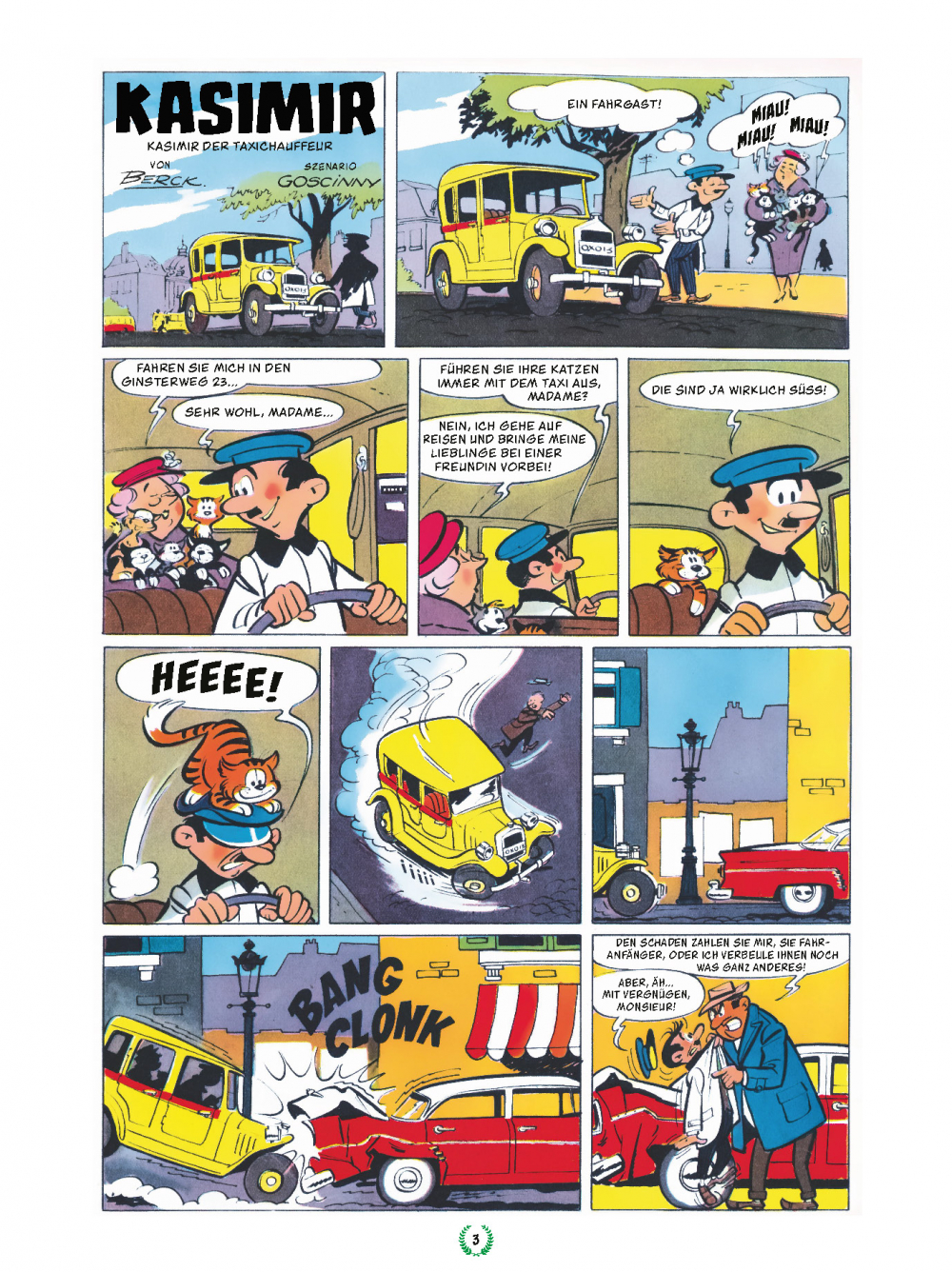 Zu den frankobelgischen Comicjuwelen, die das Zack-Magazin des Koralle Verlags für die hiesigen Leser zutage förderte, gehört die im Original Strapontin betitelte Serie Kasimir des Kreativgespanns René Goscinny und Arthur Berckmans alias Berck. Für die von Berck erfundene Figur des vom Pech verfolgten Pariser Taxifahrers verfasste der Asterix-Autor zunächst eine Reihe humorvoller Kurzgeschichten, die ab 1958 im Tintin-Magazin erschienen. Im Laufe der nächsten zehn Jahre wandelte sich Kasimir unter der Feder von Goscinny vom Unglücksraben zu einem echten Comichelden, der im Zuge seiner Reisen unter anderem in den USA, Japan, Argentinien und Grönland Station macht.