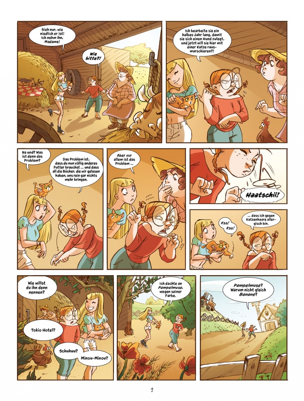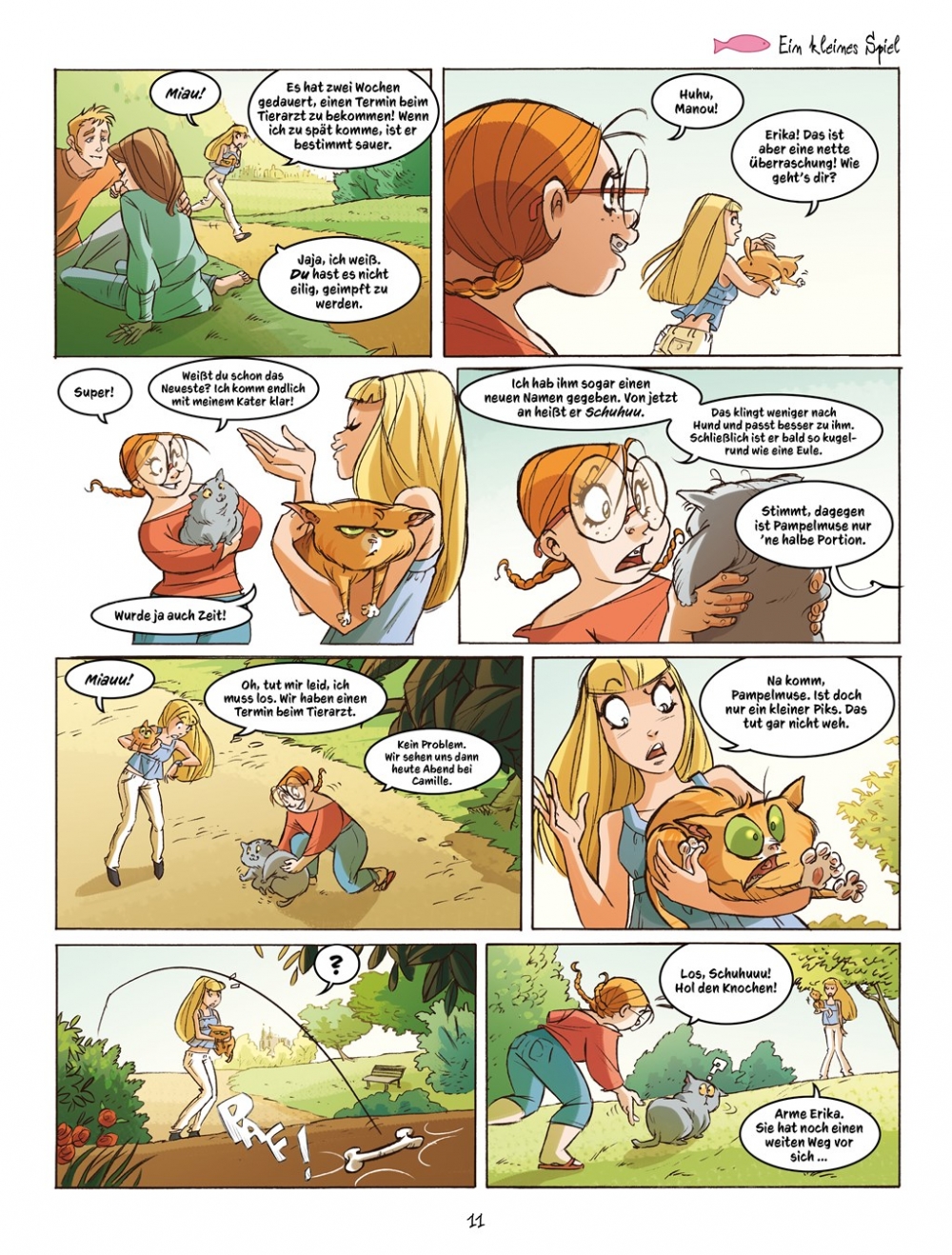 Eigentlich will Manou ja einen Hund haben, aber als sie dann unter all den Welpen ein orangefarbenes Katerchen entdeckt, ist es um sie geschehen. Kurzerhand nennt sie den Kleinen "Pampelmuse" und die beiden werden schnell unzertrennlich. Gemeinsam mit Manous Freundinnen Erika und Camille sowie deren ebenfalls kürzlich adoptierten Katzen Schuhuu und Imnopet erleben sie allerlei chaotische Abenteuer, die so ein Vierbeineralltag eben mit sich bringt. Ob daheim oder unterwegs: Bei Manou und Pampelmuse ist immer etwas los.