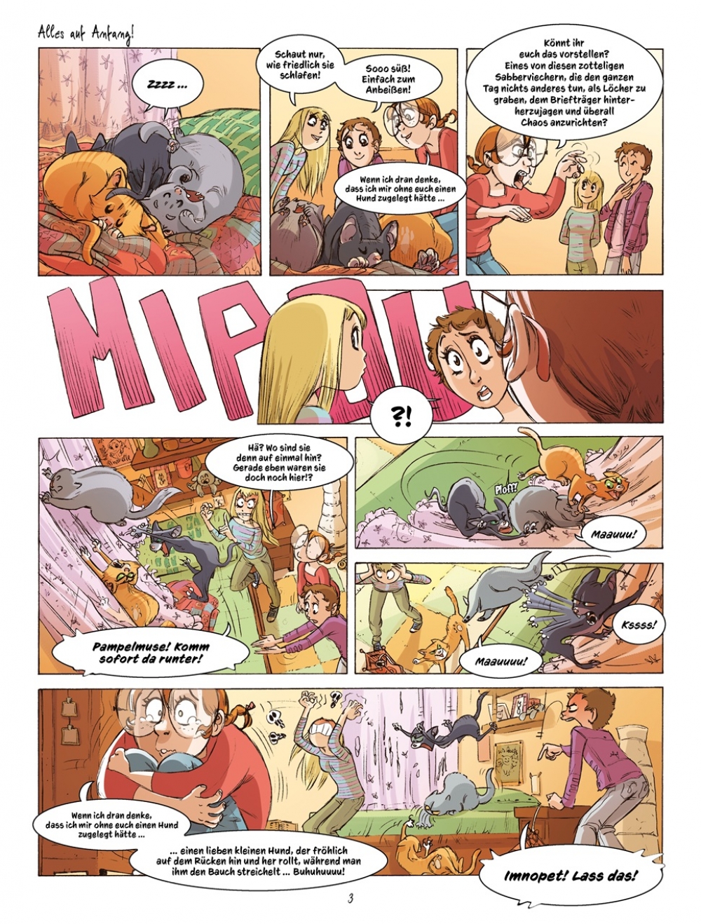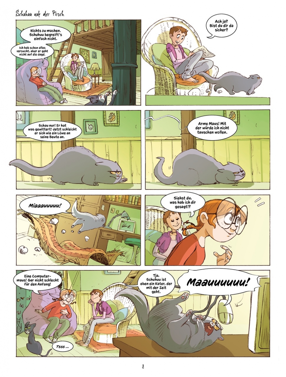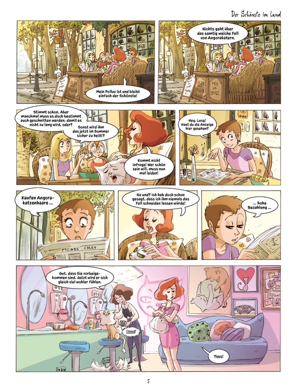 Die Ferien stehen an und so machen sich Manou und ihr kleiner Bruder auf zur Insel Noirmoutier, um dort ein paar Wochen bei ihren Großeltern zu verbringen. Keine Frage, dass Kater Pampelmuse ebenfalls nicht fehlen darf ... und als dann auch noch Manous Freundinnen Erika und Camille samt Schuhuu und Imnopet überraschend vorbeischauen, ist das übliche Chaos natürlich vorprogrammiert. Sommer, Sonne, Strand und Meer ... und jede Menge Katzen: Das alles erwartet euch in "Katzen! - Band 2: Meer-Katz"!