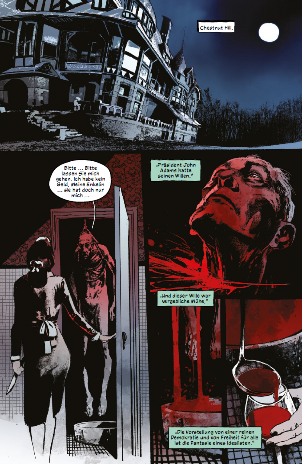Jetzt, da sein Vater sich zur ewigen Ruhe gelegt hat, ist Jimmys schlimmster Albtraum jedoch lange noch nicht vorbei. Abigail Adams ist versessen darauf, die Schreckensherrschaft ihres Mannes wieder zu entfachen – mit noch brutaleren und gnadenloseren Angriffen auf die Stadt, die mittlerweile von einigen „Killadelphia“ genannt wird.