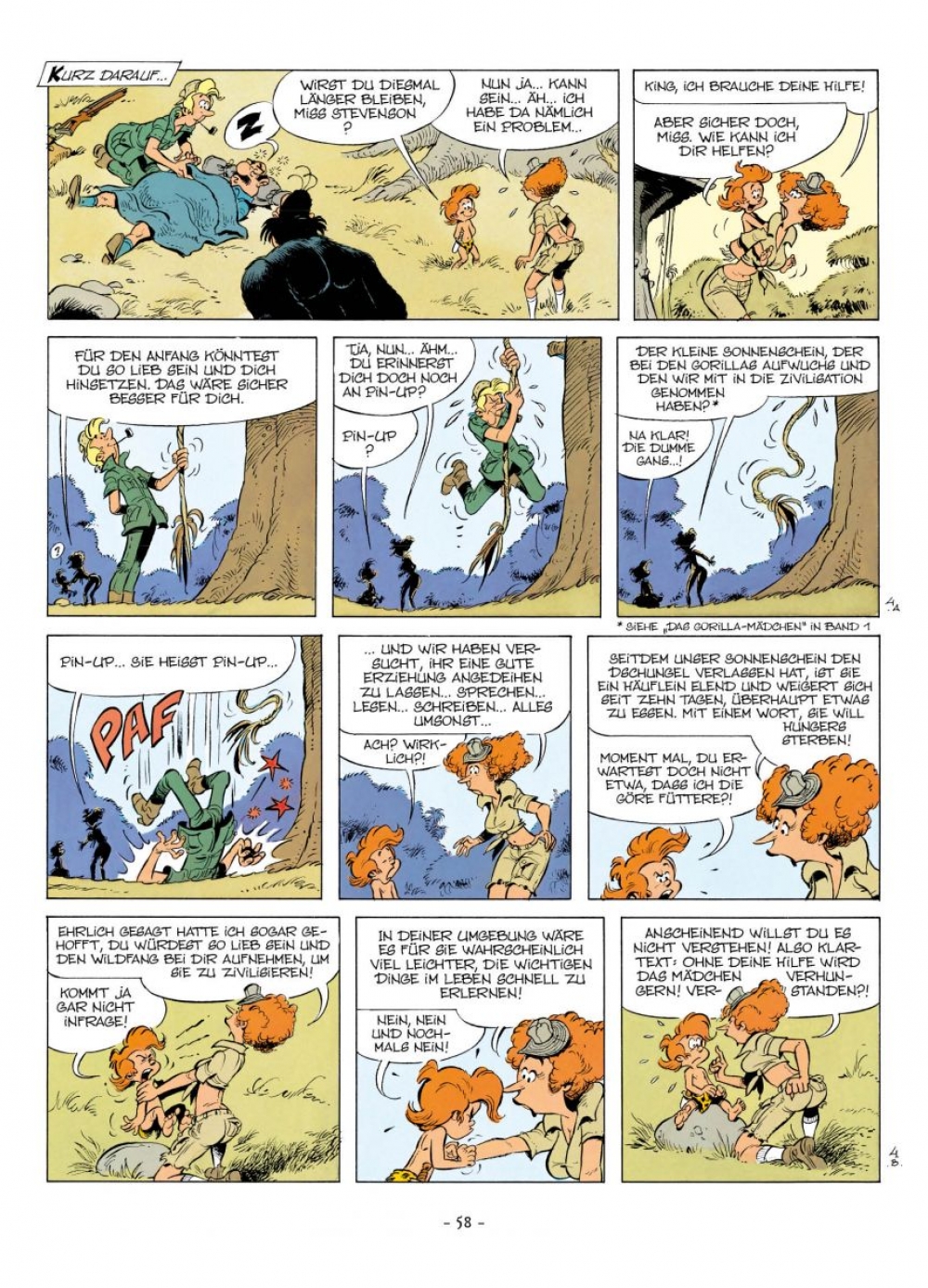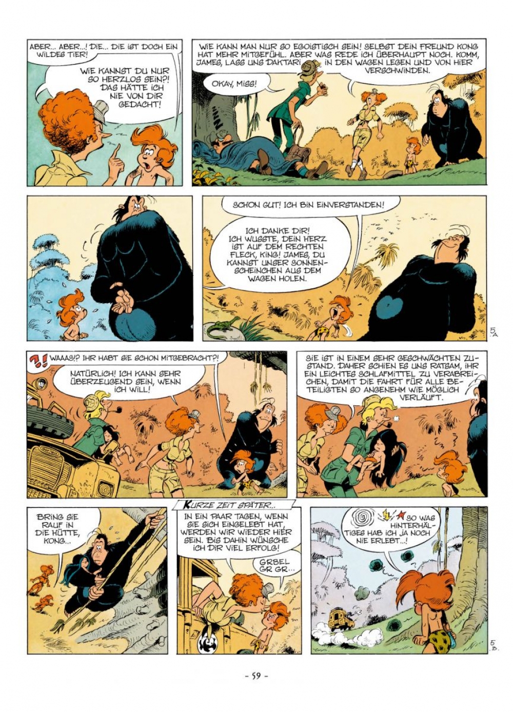 Anfang der 1980er Jahre erfuhr die von Mazel und Cauvin geschaffene Serie King und Kong eine Änderung ihres französischen Original-Titels von Boulouloum et Guiliguili in Les jungles perdues, eine deutliche Anlehnung an den Klassiker Die vergessene Welt von Arthur Conan Doyle. Dementsprechend vollzog die Serie inhaltlich eine 180°-Kehrtwende, was sich nicht nur auf die Namen unserer Helden auswirkte, die fortan „Kaloum et Kong“ hießen, sondern auch auf die Themen, die nun wesentlich fantasievoller und mit deutlichen fantastischen Elementen daherkamen.