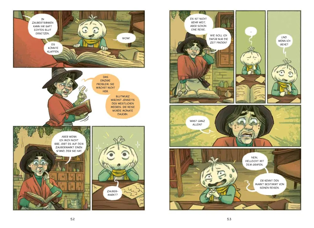 Knobi liebt es, Zeit mit der Hexe Agnes, Karotte und ihrem neuen Freund, dem Grafen, zu verbringen, der sich eher als netter Nachbar denn als gruseliger Vampir erweist. Als eine wichtige Zutat für den vegetarischen Blutersatz für den Grafen auf dem Zaubermarkt weit weg vom Dorf gekauft werden muss, wird kurzerhand Knobi auf einem Besenstiel dorthin geschickt. Und als ob diese Aufregung nicht schon genug für Knobi wäre, scheint sich die kleine Knolle nach und nach in einen Menschen zu verwandeln …