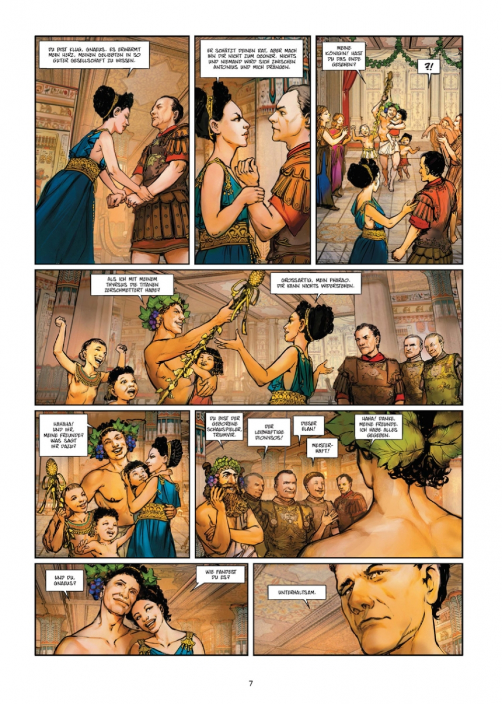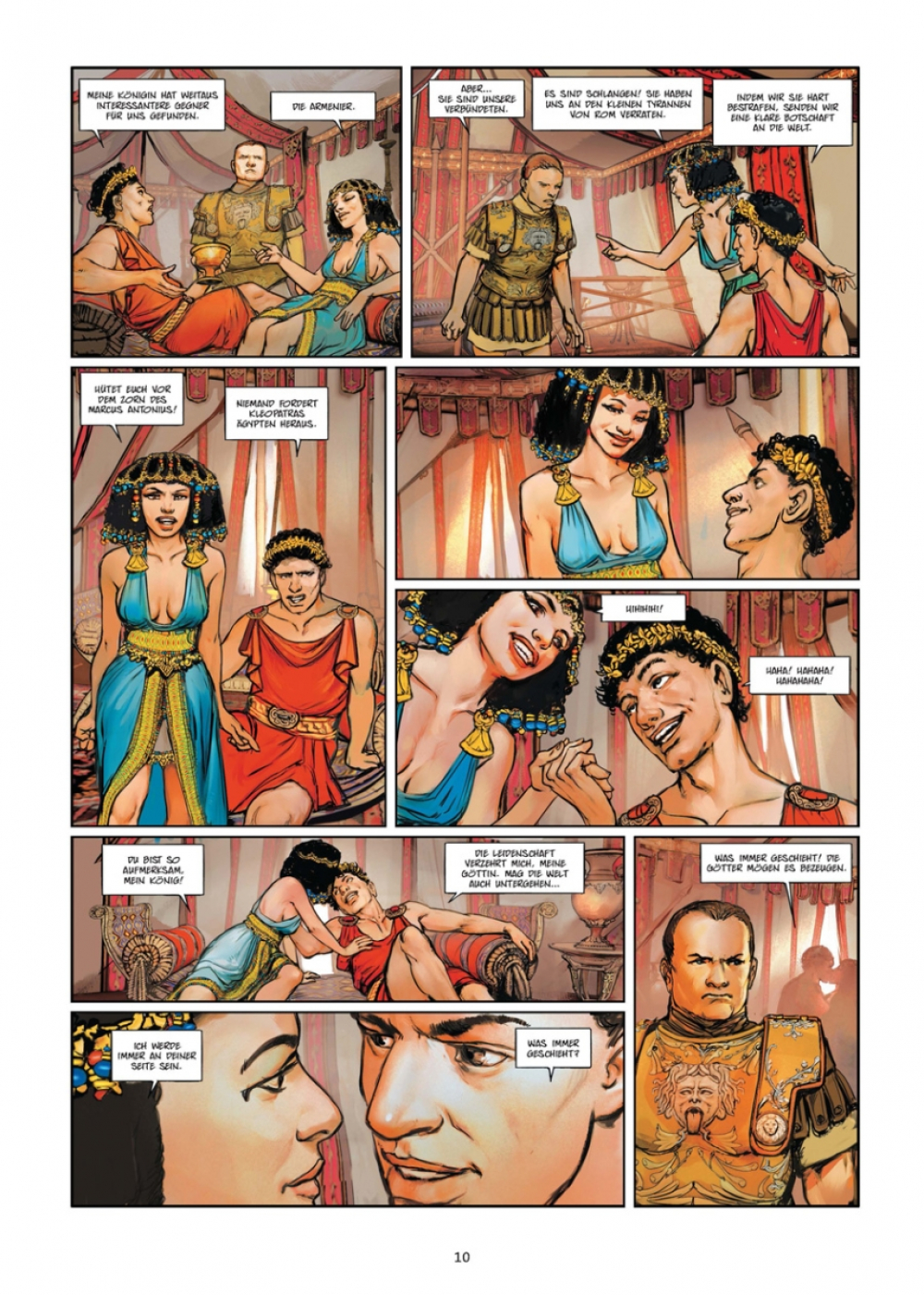 Kleopatra VII. Thea Philopator, Tochter von Ptolemaios XII., besteigt mit 17 Jahren den Thron Ägyptens. Dem Willen ihres Vaters und uralter Tradition folgend, herrscht sie nicht alleine, sondern zusammen mit ihrem zehnjährigen Bruder Ptolemaios XIII., dessen Gemahlin sie werden muss. Mit Willensstärke, Mut und Klugheit will sie die Macht ihrer Nation festigen und ausbauen, vor allem gegenüber dem Römischen Reich. Doch unter dem Einfluss des Eunuchen Potheinos und des Feldherren Achillas wendet sich ihr Bruder gegen sie. Ein blutiger Kampf um die Krone Ägyptens entbrennt, und Kleopatra wird ins Exil gezwungen. Doch ihr Wille, als Frau in einer Männerwelt zu bestehen, bleibt ungebrochen, und so sucht sie die Unterstützung eines mächtigen römischen Konsuls und Generals: Gaius Julius Caesar.
