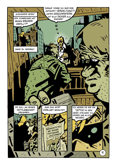 Nachdem in Band 18 „Inferno“ der Brandstifter Ronald zu Tode gekommen war, schwört nun sein mysteriöser Bruder Alexander Heiss auf Rache an Kommissar Fröhlich. Er fängt selbst an mit Brandstiftungen und schnell kommen Fröhlich und sein Assistent Tumba auf seinen Namen, aber…. Er scheint gar nicht zu existieren! Als sogar Fröhlichs Wagen vor dem Präsidium abgefackelt wird, ist ihnen der Ernst der Lage klar!