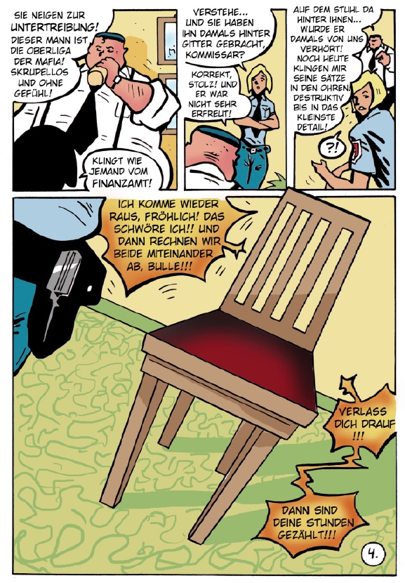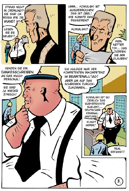 Im neunten Kommissar Fröhlich Fall wird der knorrige Dicke aus dem Stader Präsidium mit seiner Vergangenheit konfrontiert: Ein längst vergangener Fall wird für ihn aktuell, als der damalige Verurteilte Bankräuber Kowalski ihm Rache schwört. Und dieser geht nicht zimperlich vor. Dennoch versucht Fröhlich, klaren Kopf zu bewahren. Was um so schwieriger wird, als Kowalski unerwartet Fröhlichs Sohn in die Hände bekommt. Die Sache spitzt sich fortan sichtlich zu... Auch in diesem Fröhlichband bringt Stephan Hagenow die Spannung wieder auf den Punkt und schafft ein fesselndes Lesevergnügen für alle, die Krimis und Thriller mögen. Der neue Band ist dieses Mal komplett in Farbe und hat auch mit 17x24cm ein grösseres Format. Dazu kommt eine erhöhte Seitenzahl auf 104 Seiten.