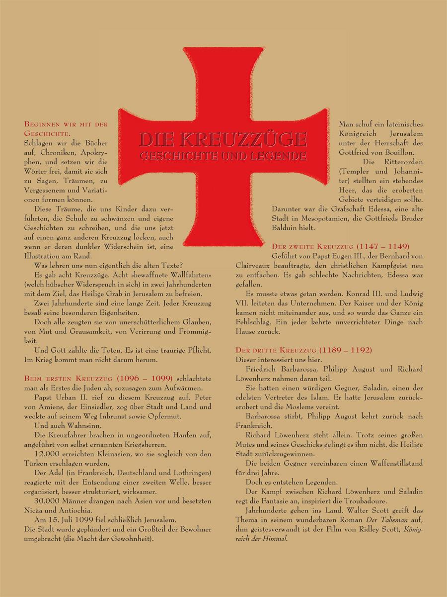Im Heiligen Land droht ein neuer Krieg auszubrechen. Angeführt von Gregor von Arcos und dem finsteren Herzog von Tarente rüsten sich die Christen, Jerusalem zu erobern und es der Kontrolle des Sultans Ab’dul Razim zu entreißen.