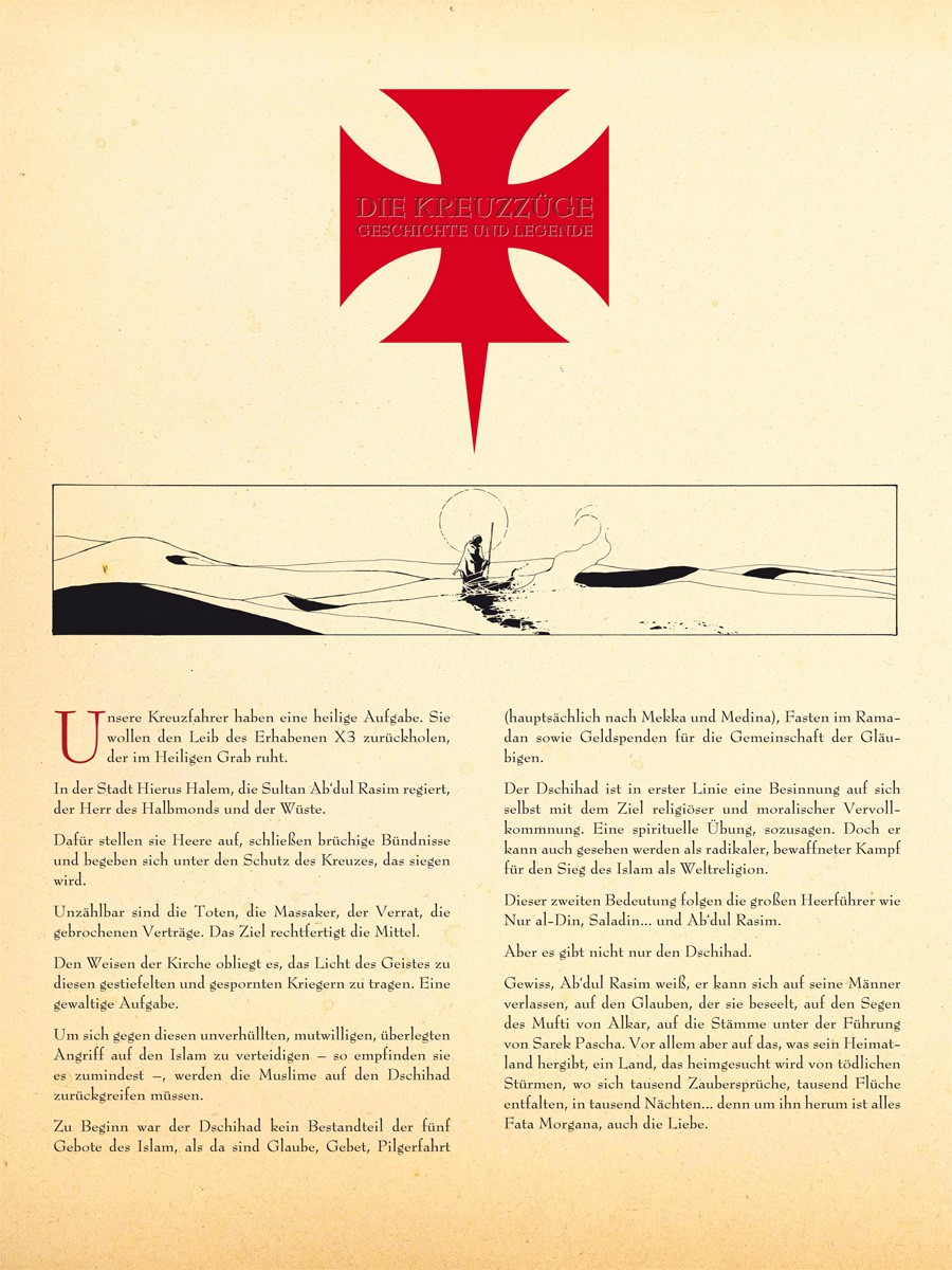 Im Heiligen Land droht ein neuer Krieg auszubrechen. Angeführt von Gregor von Arcos und dem finsteren Herzog von Tarente rüsten sich die Christen, Jerusalem zu erobern und es der Kontrolle des Sultans Ab’dul Razim zu entreißen.