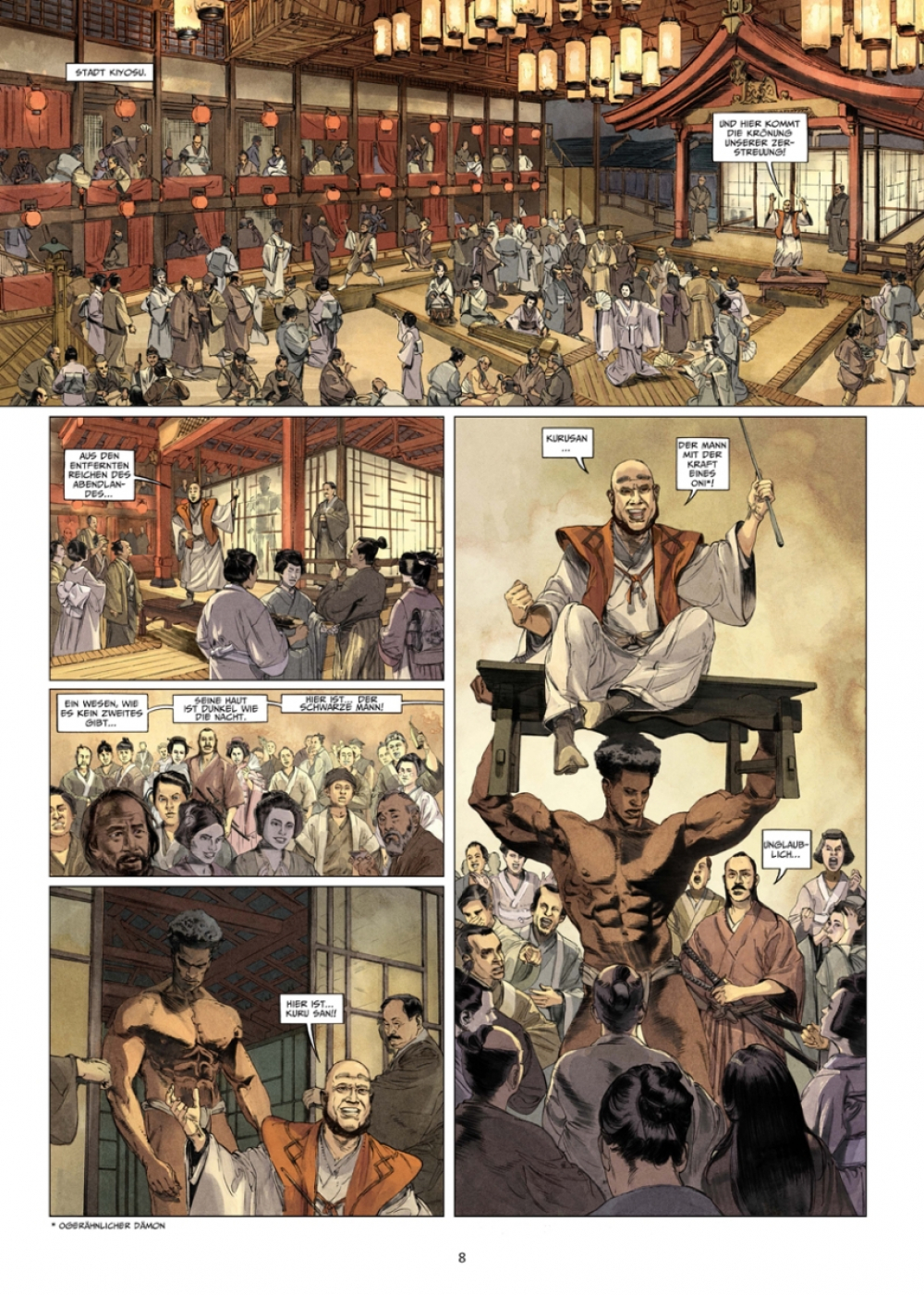 Als Sklave eines italienischen Missionars landet Yusuf im Jahre 1579 in Japan. Noch nie haben die Bewohner des Inselreichs ein Wesen wie ihn gesehen – riesengroß, vollkommen schwarz und mit lockigem Haarschopf. So wird auch der mächtige Oda Nobunaga auf den Diener mit der Haut wie Ebenholz aufmerksam und bringt ihn in seinen Besitz. Fortan heißt er Yasuke und lernt Sitten und Bräuche der japanischen Kultur kennen und schätzen. Der Feldherr wiederum zeigt sich beeindruckt von der Kraft, der Gelehrsamkeit und dem Mut dieses Fremden, der sich schnell als wahrer Vertrauter beweist…