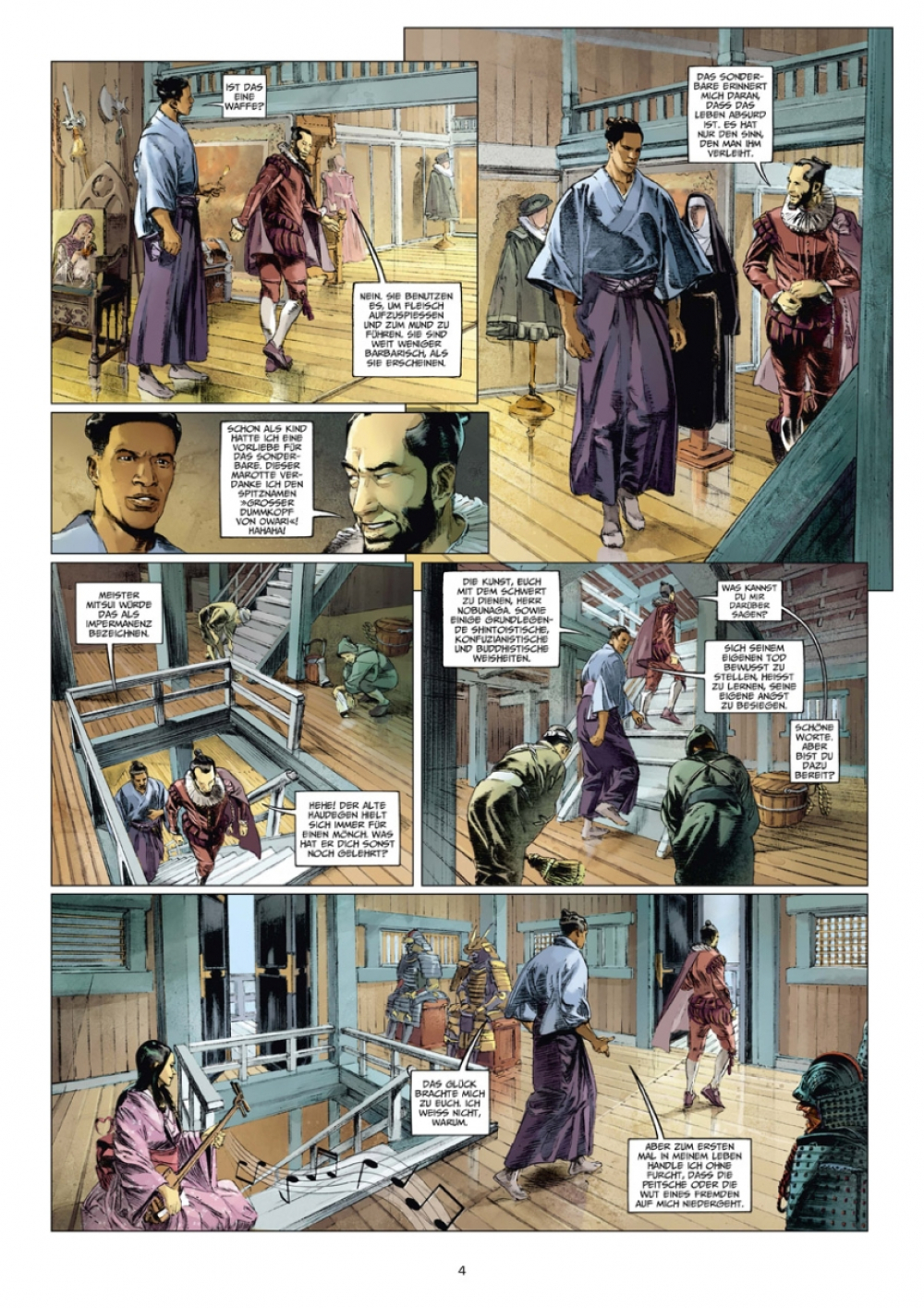 Yusuf, genannt Kurusan, folgt nun dem Weg des Bushido. Zum ersten Mal in seinem Leben muss er weder die Peitsche eines Herren noch den Zorn eines fremden Gottes fürchten. Er dient dem Fürsten Nobunaga, der weit und breit dafür bekannt ist, ein großer Sammler aller möglichen Dinge aus dem Westen zu sein. Aber ist Kurusan in seinen Augen wirklich nur eine weitere Kuriosität?