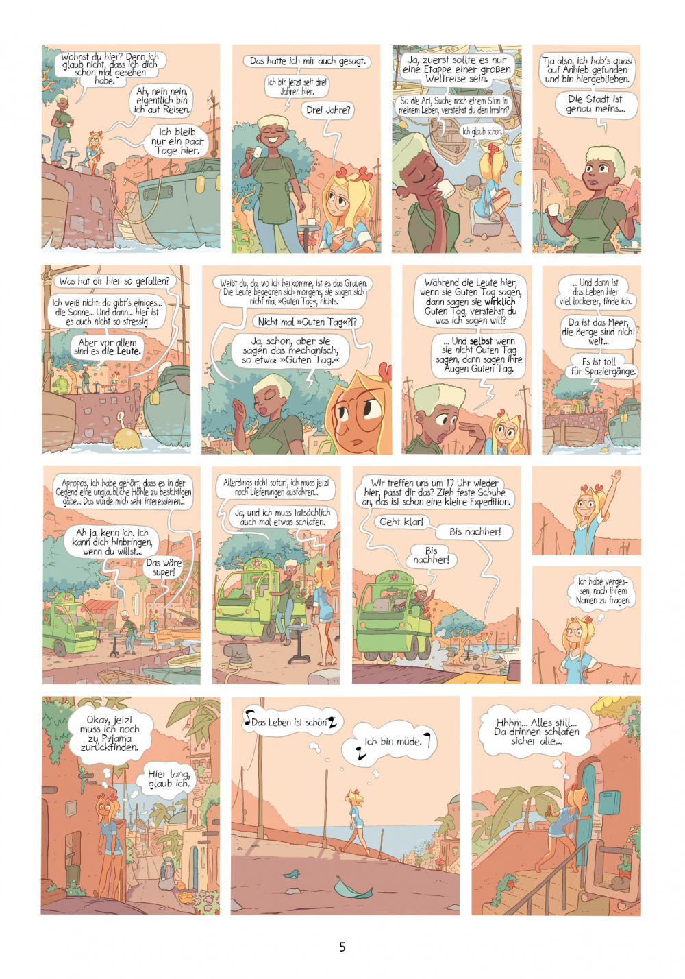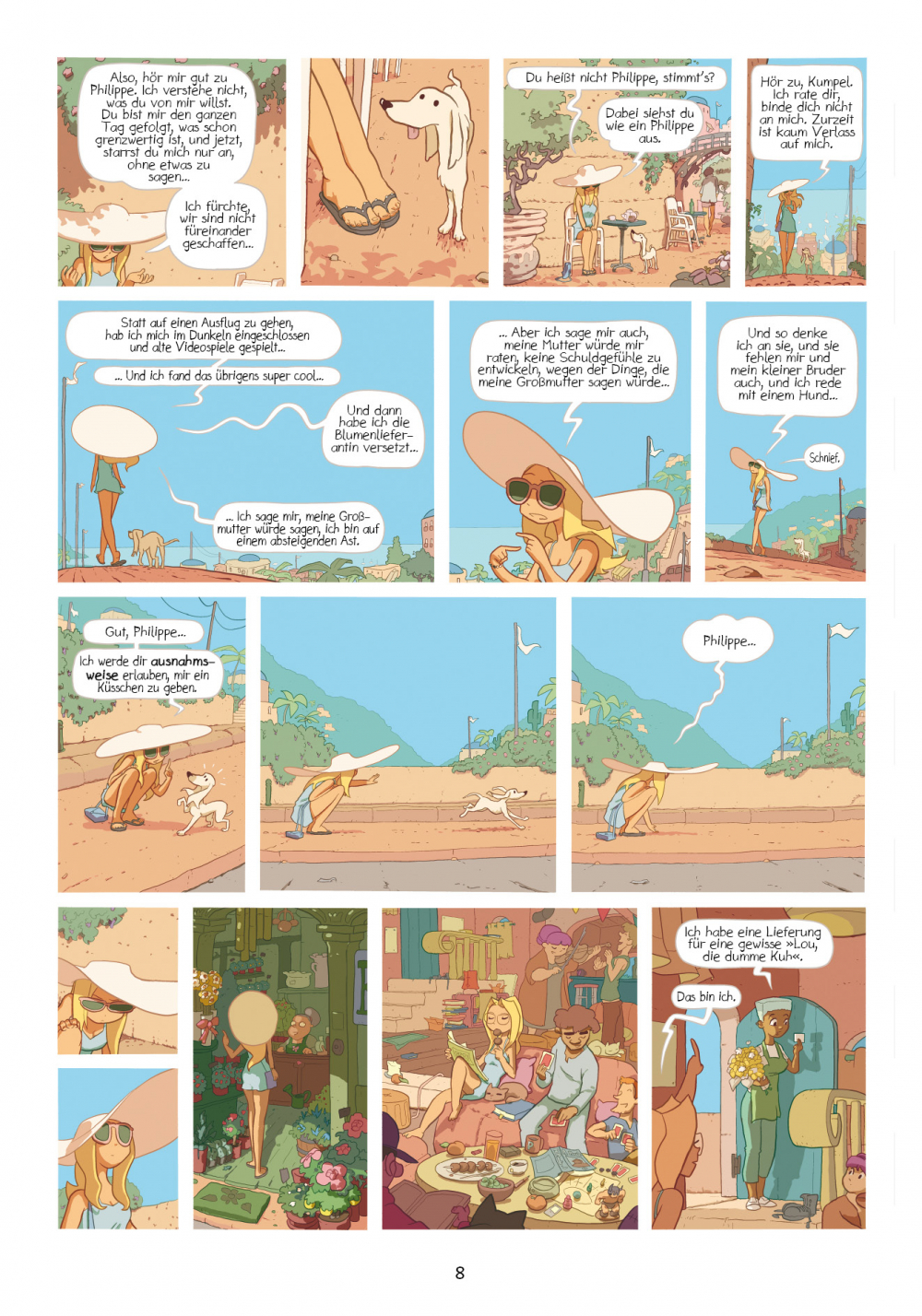 Lou lebt, zusammen mit einer sehr typischen Katze und einem kleinem Bruder, bei ihrer alleinerziehenden Mutter. Letztere ist Science-Fiction-Autorin mit häufigen Schreib- und Männerblockaden. Was Julien Neel daraus macht ist eine mal liebenswerte, mal lustige, aber auch nachdenkliche, von mancher „Katastrophe“ unterbrochenen Reise, die den Weg unserer Heldin vom Kindsein, über die Pubertät, hin zur jungen Erwachsenen schildert