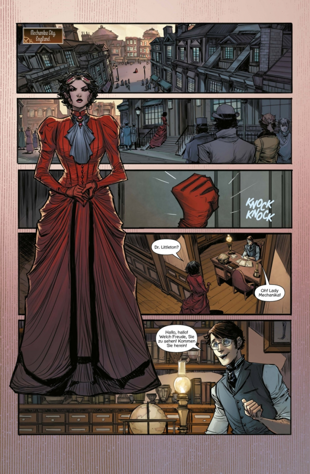 »Lady Mechanika« als großformatige Liebhaberedition! Genießt die ultimative Steampunk-Comicreihe in einem Format, das ihr angemessen ist. Diese limitierte Collector's Edition beinhaltet die komplette Story »Sangre« – und das im übergroßen Format von 23 x 32 cm!