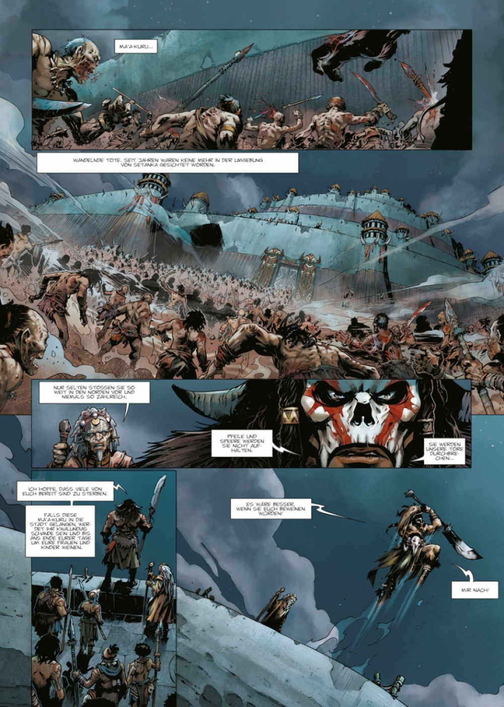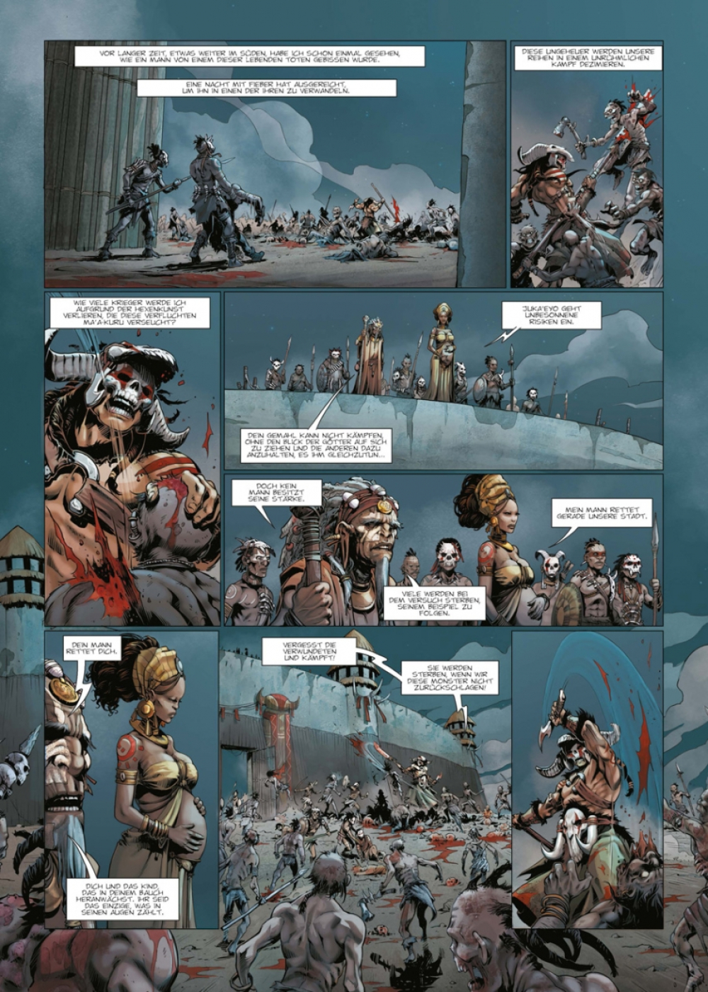 Nach einem verheerenden Angriff der verwesenden Horden der Ma'a-kuru auf seine Stadt steht Juka'Eyo, der sagenumwobene wie verhasste Häuptling von Kwalundia, ohne Krieger da. Um die Fährte der Ma'a-kuru aufzunehmen, umgibt er sich mit seinen Rivalen, und er verfolgt die Monstren bis nach Akarda, dem Land der Toten. Dort geschieht das Undenkbare und der große Juka'Eyo wird einen Kampf führen, der seiner Legende gerecht wird – seinen letzten.