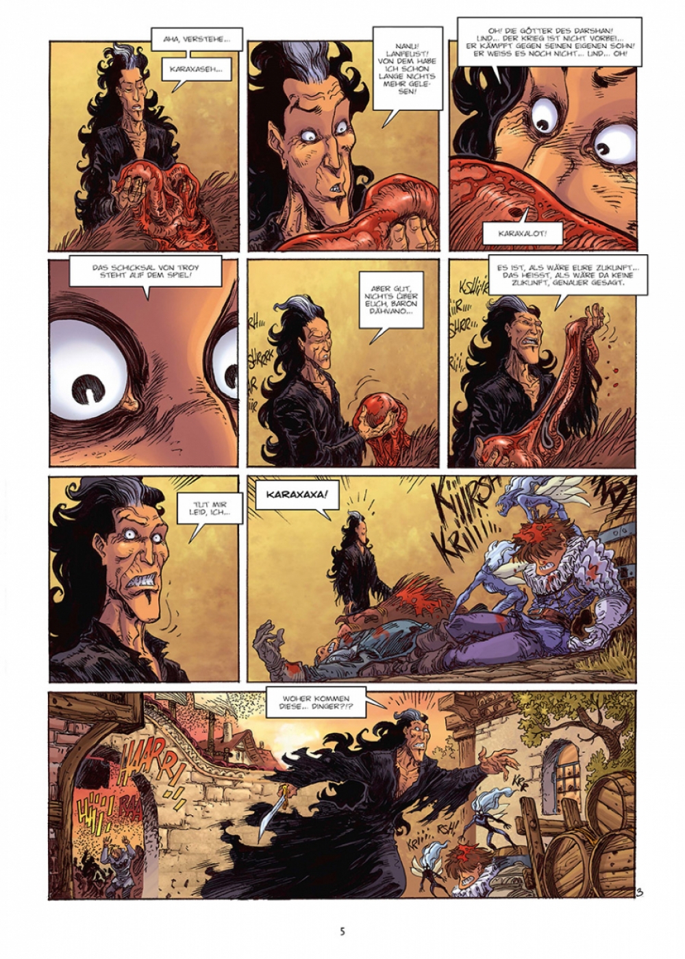 Deutsche Erstveröffentlichung! Nachdem sie den interplanetaren Frieden wiederhergestellt und alle Aufzeichnungen über den Planeten Troy aus den galaktischen Registern gelöscht haben, kehren Lanfeust und Hebus nach Eckmül zurück. Bei ihrer Rückkehr müssen die beiden jedoch feststellen, dass auf Troy 20 Jahre vergangen sind, obwohl es für sie nur zwei waren. Lanfeust findet sich wieder in einer Welt, in der er für die jüngeren Generationen fast eine Legende ist… und manchmal eine Belästigung für die alten. Und vor allem muss er sich einer schrecklichen Gefahr stellen, welche die Magie und damit die Grundfeste des Lebens auf Troy in Zweifel zieht… Der dritte und letzte Zyklus der großen »Troy«-Saga von Arleston und Tarquin! Abschlussband der Reihe