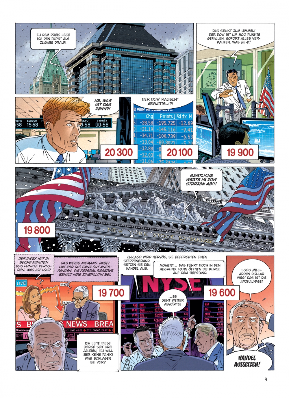 An der Wall Street crasht die Börse, der Dow Jones befindet sich im freien Fall, die Finanzwelt blickt in den Abgrund. Schuld ist die Investment-Sparte der Gruppe W. Largo Winch hält sich bei einem Wirtschaftsforum in Yucatan auf, als ihn die schlechte Nachricht erreicht. Als er zum Flughafen eilt, um sich in seine Konzernzentrale in Chicago zu begeben, gerät er in eine Anti-Wallstreet-Demonstration. Jetzt muss Freddy, Largos genialer Pilot für alle Fälle, zeigen, was er kann...
