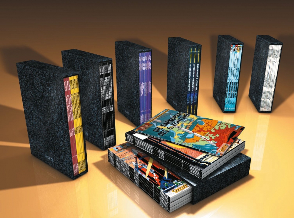 Der neue Schuber nimmt als Hybrid sehr viele klassische Comicalben in idealer Form auf! Das Format ist bewusst für 10 klassische 48-seitige Softcover-Standardalben (also dem 52-Seiter) im Format 220 x 295mm ausgelegt. Genauso passen aber auch die Hardcover im Format 225 x 300mm. Das schafft klare Strukturen und Übersichtlichkeit!