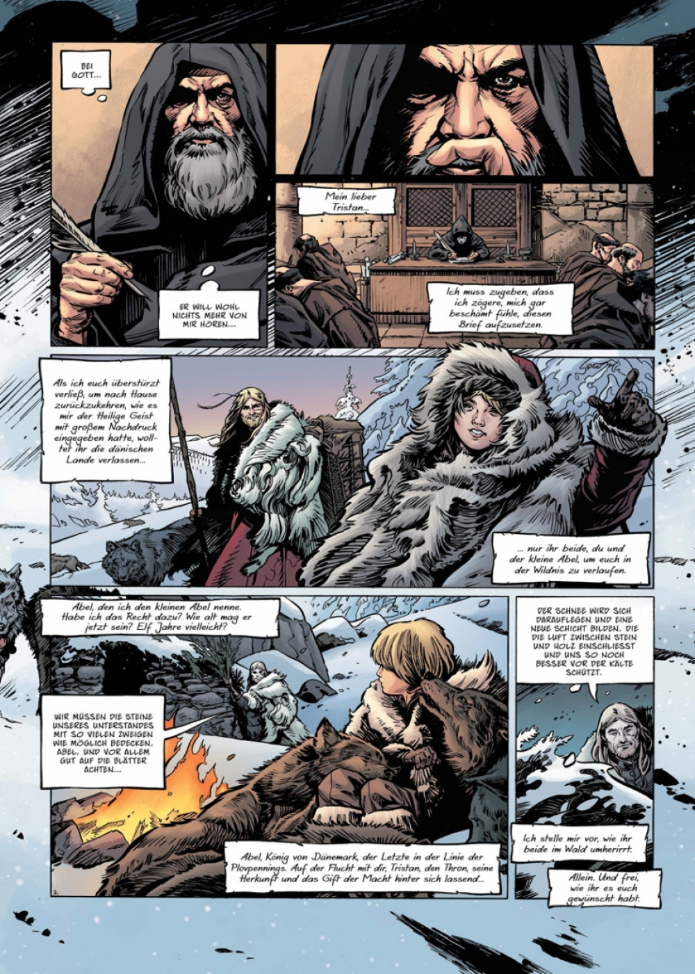 Tristan von Halsburg hat einen Schützling, den kleinen Abel, der einst Kaiser von Dänemark war. Gemeinsam sind sie in Begleitung ihrer Wölfe bis in die eisigen Ländereien Russlands geflohen. Doch im 13. Jahrhundert glüht dort ein Funke der Revolution im Herzen des Volkes, gegen die Ungerechtigkeit der Herrscher und gegen die Korruption der Kirche. Ein Sturm zieht auf, und Tristan und Abel, die nur nach Schutz suchen, werden unweigerlich hineingezogen...