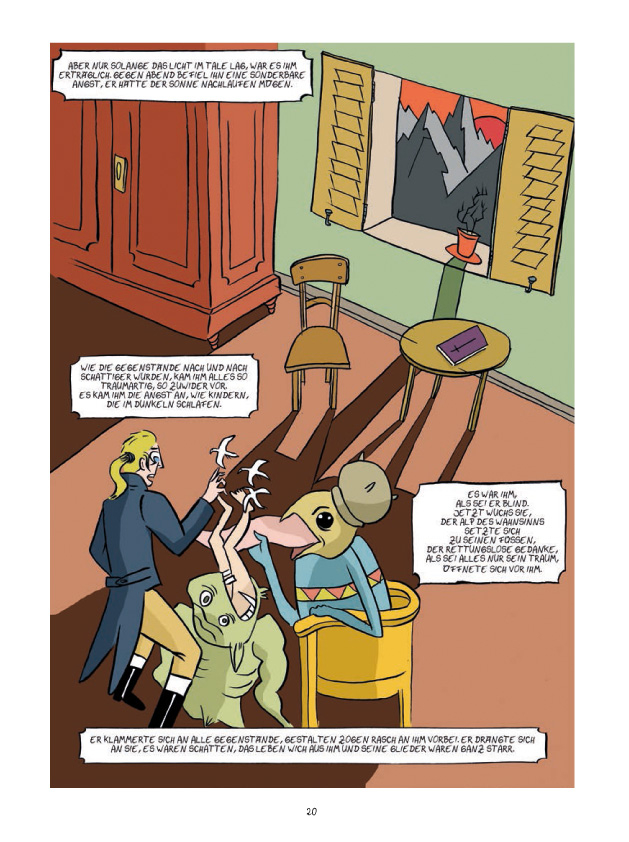Andreas Eikenroth hat hier nun diese geschriebene Malerei als Graphic Novel wieder malend zurückgeschrieben.