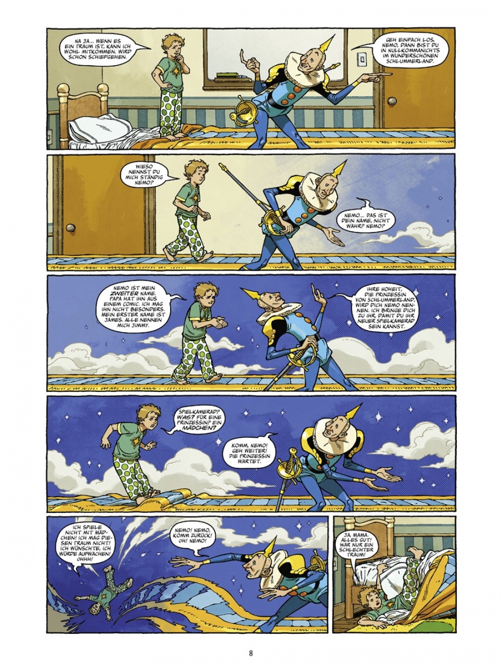 Doch halt! Ist es überhaupt derselbe Nemo? Nicht direkt… Dieser Junge heißt James Nemo Summerton und den zweiten Vornamen gab ihm sein Vater, weil er einen gewissen Comic mochte. Doch der Prinzessin vom Schlummerland ist das egal. Nach vielen langweiligen Spielgefährten will sie endlich wieder einen Nemo haben. Egal welchen. Also gibt Morpheus, ihr Vater, den Befehl, „Nemo“ ins Schlummerland zu holen. Doch leider hat Jimmy überhaupt keine Lust, mit Mädchen zu spielen…