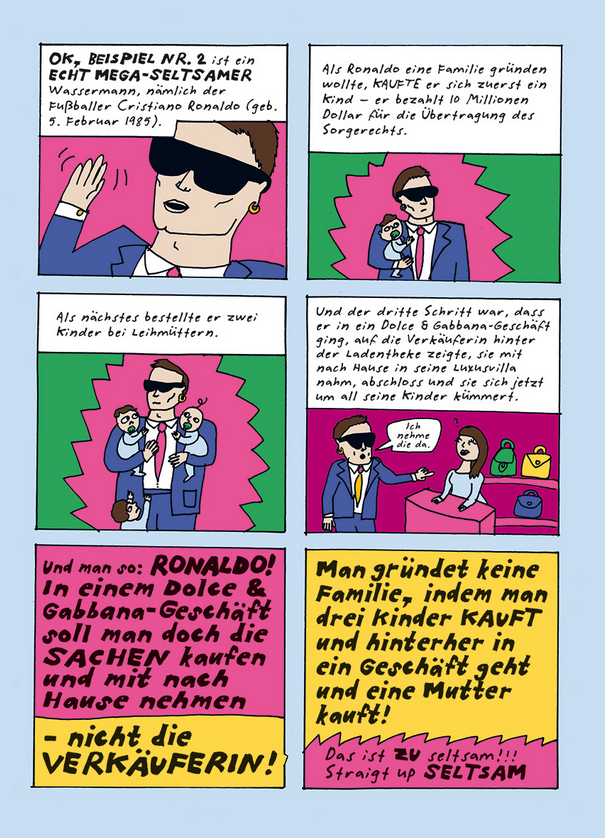 Liv Strömquist ist zurück mit einem humorvollen, satirischen Comic, der den Tierkreis als Rahmen benutzt, um die Menschheit zu unterhalten. In diesem Buch lesen Sie über eine Reihe von Menschen, deren Handlungen und Leben sich durch ihr Sternzeichen erklären lassen: der Pharmafabrikant Arthur Sackler, der Rapper Flavor Flavv, Königin Christina von Schweden und der britische Designer, der die Menschheit verließ, um als Ziege in den Alpen zu leben, um nur einige Beispiele zu nennen.