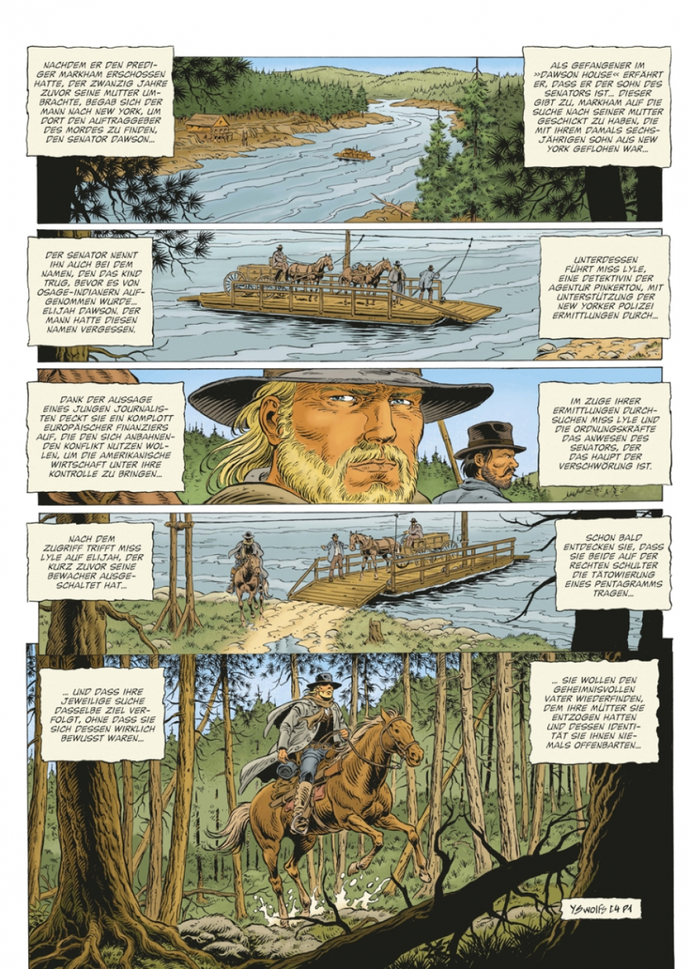 Elijah war nach New York gegangen, um Rechnungen zu begleichen, und er verließ die Stadt mit einer Familie, die aus dem Schleier des Vergessens hervorgetreten war. Doch weder er noch seine Schwester, die Pinkerton-Agentin Miss Lyle, hatten den Mann zur Rede stellen können, der für all ihr Unglück verantwortlich ist: ihren Vater, Senator Dawson. Der hat Zuflucht gesucht auf dem Land des berüchtigten Kultisten Cromley. Um endlich zu ihrem Familientreffen zu kommen, müssen die Geschwister den Teufel persönlich herausfordern!