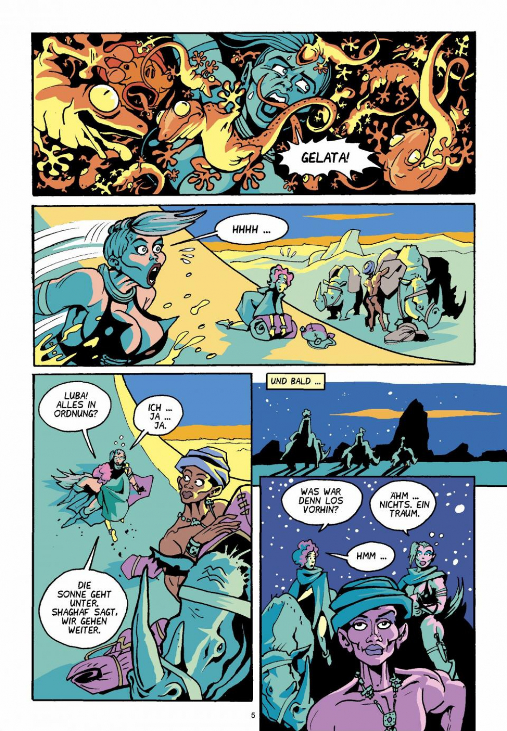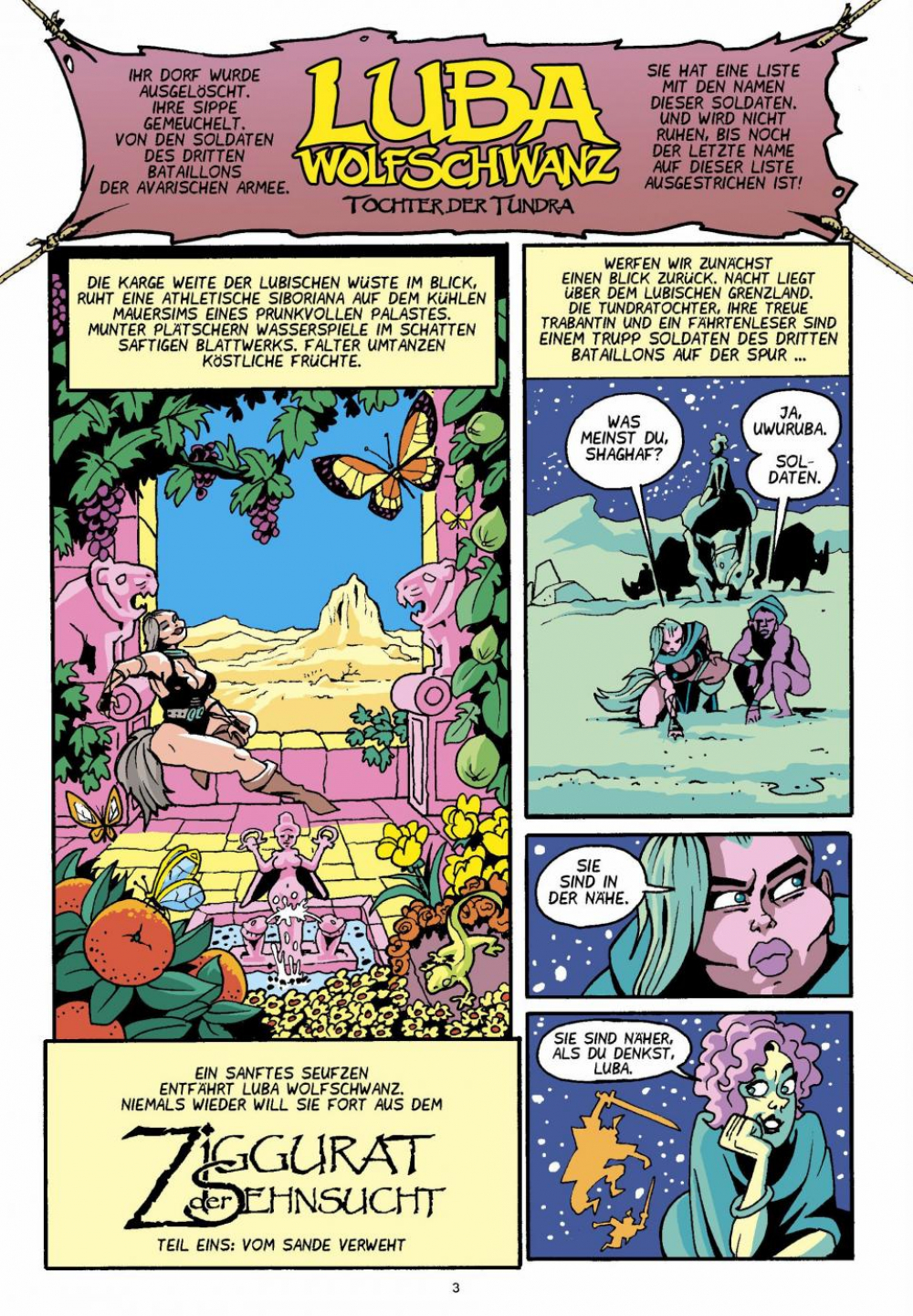 Durch diese tödliche Ödnis marschieren Luba und Gelata, einem Trupp Soldaten des dritten Bataillons der verhassten Armee von Avara auf der Spur. Flirrende Hitze am Tag und ein sternenbehangener Himmel in der Nacht lassen die Realität immer unwirklicher erscheinen. Doch es gibt hier einen Ort, der Erholung und mehr verheisst: Der Ziggurat der Sehnsucht empfängt müde Wanderer ...