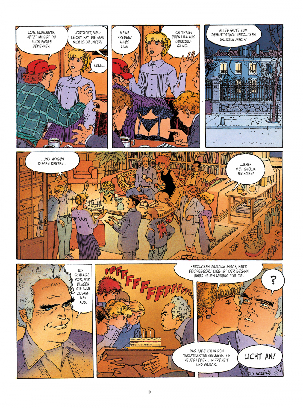 „Der Philosophieprofessor Alain Mangel lebt in einer geordneten Welt mit selbstauferlegtem Zölibat. Als seine Frau ihn verlässt, erliegt er den Reizen seiner Studentin Elisabeth, und dann bricht die Hölle los: seine verdrängte Libido verfolgt ihn in Form eines grün leuchtenden Dämon und Elisabeth entpuppt sich als religiöse Fanatikerin, die glaubt, durch seinen Samen einen neuen Heiland zu empfangen. Sie nötigt ihn auch noch, die Tochter eines Drogenbarons aus dem Irrenhaus zu entführen, weil sie in ihr die Reinkarnation der Heiligen Maria sieht, und nun gibt es kein Halten mehr. Vor allem nicht für Jodorowsky und Moebius.