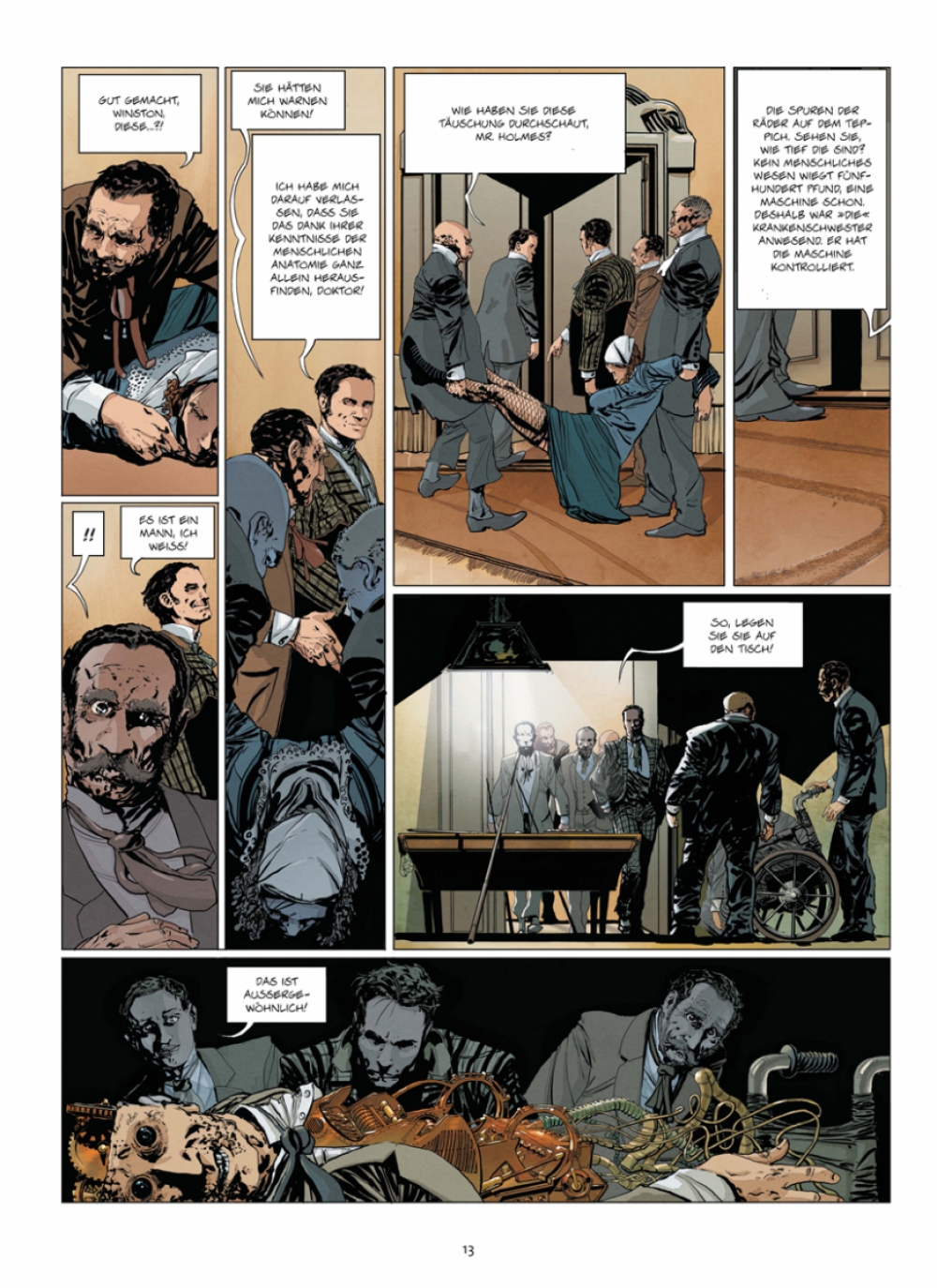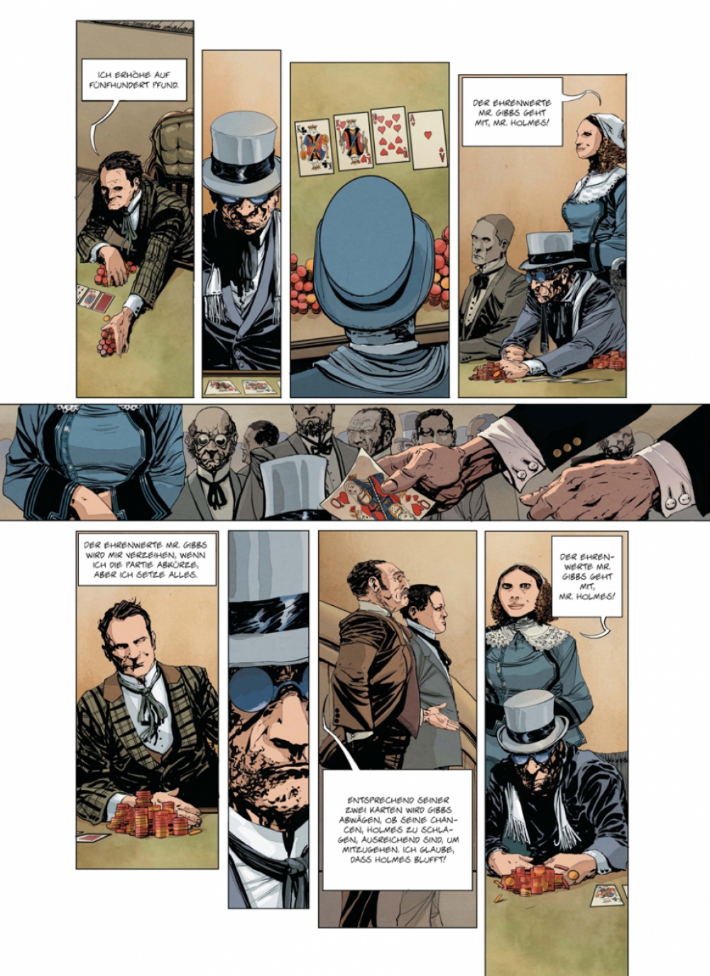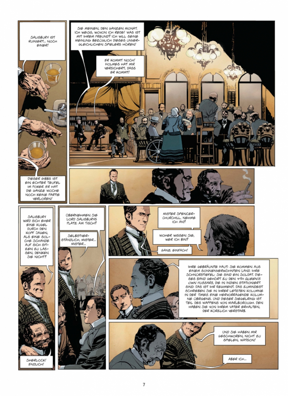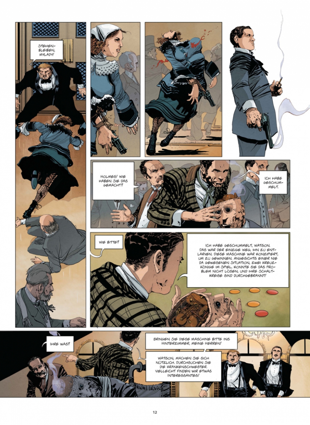 Das Jahr 1899, London. Die wabernden Schwaden einer kleinen Opiumhöhle werden durch die Raserei eines monströsen Mannes verwirbelt, den die Süchtigen als Dr. Jekyll kennen. Zur gleichen Zeit beweist der berühmte Sherlock Holmes in einer benachbarten Spielhölle, dass sein Kontrahent Mr. Gibbs, der seit Wochen die Londoner Oberschicht am Spieltisch ausnimmt, ein Betrüger ist. Denn er ist nicht Mensch, sondern Maschine! Nur ein einziger Mann kann einen derart ausgefuchsten Apparat ersonnen haben: Holmes‘ totgeglaubter Erzfeind Moriarty! Gemeinsam mit seinen Kompagnons, dem loyalen Dr. Watson und Winston Churchill höchstpersönlich, beginnt Sherlock Holmes umgehend die Ermittlungen. Das Spiel beginnt.