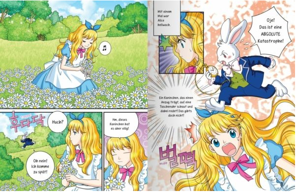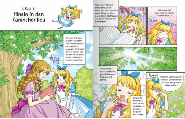 An einem Sommertag folgt Alice einem weißen Kaninchen bis in seinen Bau und gerät in ein wunderbares Reich skurriler Tiere und Menschen, in dem Größen und Maße sich plötzlich ändern können und es insgesamt sehr unvernünftig zugeht. Schließlich sieht sich Alice gezwungen, in dem Chaos für Ordnung zu sorgen, obwohl ihr das eigentlich gar nicht liegt … Eines der bekanntesten Kinderbücher der Weltliteratur liegt endlich in einer zeitgemäßen Manhwa-Version für junge Leser vor. Die Titel dieser Reihe zeigen Klassiker der Kinder- und Jugendliteratur im angesagten Stil koreanischer Manhwas: Junge koreanische Künstler nehmen sich der bekannten, beliebten Stoffe an und überführen sie in durchgehend vierfarbige Bildergeschichten, bei denen auch der Text inner- und außerhalb der Sprechblasen nicht zu kurz kommt. Alice im Wunderland und Heidi, Arsene Lupin und Sherlock Holmes erwachen so auf 192 durchgehend farbig illustrierten Seiten als Manhwa-Figuren neu zum Leben. Die Reihe ist konzipiert, den Klassikern sowohl neue als auch ältere Leser zu erschließen und wird fortgesetzt. • Das beliebte Kinderbuch im koreanischen Manhwa-Stil • Leichter Zugang zu Weltliteratur für junge Leser • Durchgehend vierfarbig