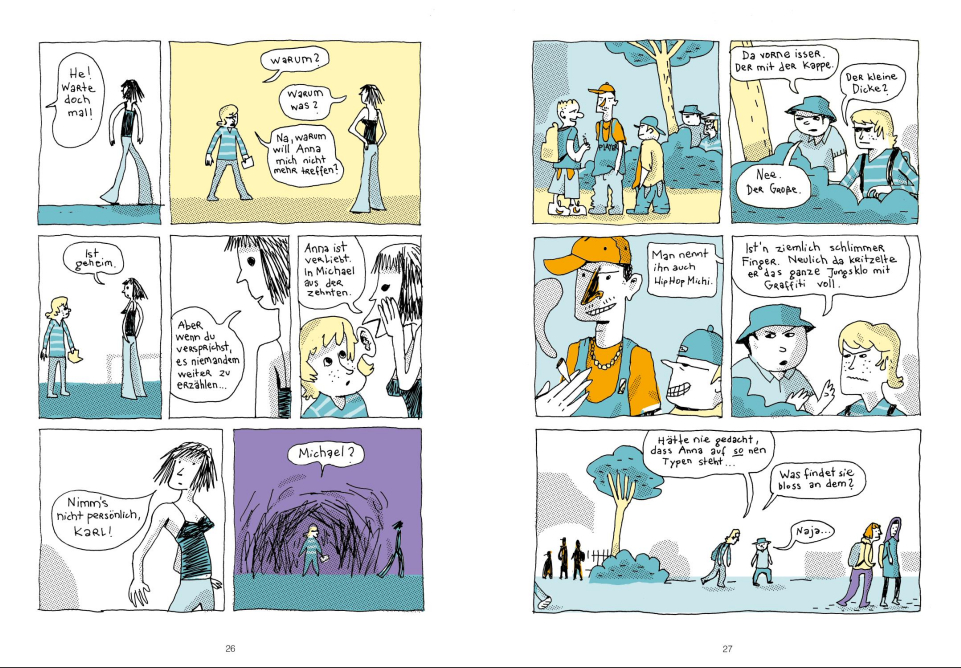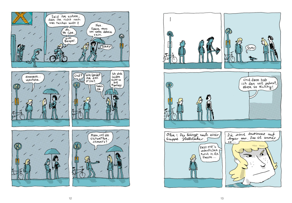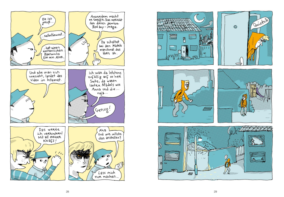 In seiner zweiten Veröffentlichung bei Jaja entführt uns Valentin Krayl zurück in die Nuller Jahre und zeigt, dass er auch eine umfangreiche Story mit Charme und Witz spannungsreich erzählen kann. Und seinen Stil gefunden hat, sympathisch skizzenhaft und angenehm leicht koloriert.